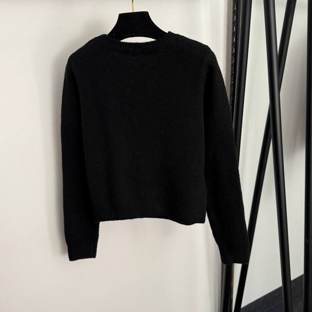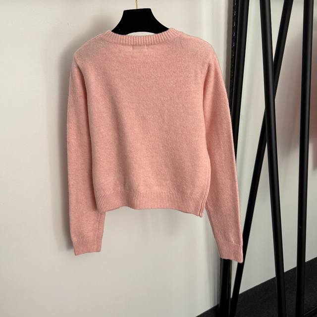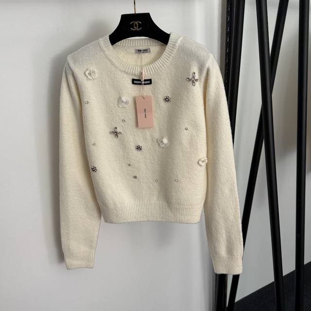 Style No. 20257353 Miumi* New Sequined Rhinestone Neck Label Letter Pullover Long-Sleeve Knit Sweater, Apricot, Pink, Black, One Size: Shoulder Width 39cm, Bust 92cm, Sleeve Length 63cm, Length 52cm; Weight: 0.290kg. DDD