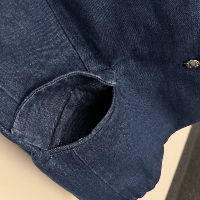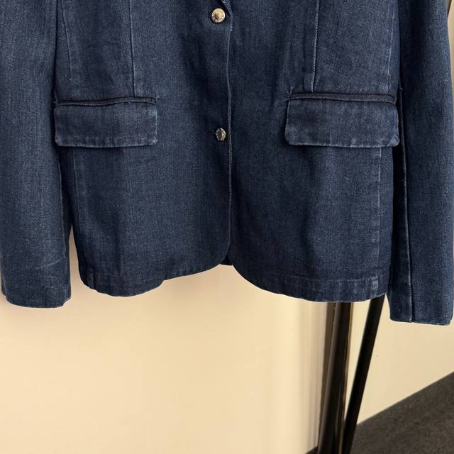 Style No. 20257420 prad* New Logo Gold Button Lapel Long Sleeve Denim Blazer, Blue, Sizes S, M, L, M: Shoulder Width 43cm, Chest 104cm, Sleeve Length 65cm, Length 69cm (DDD)