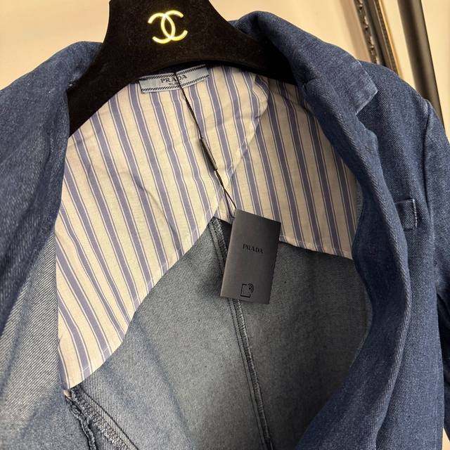 / Style No. 20257420 prad* New Logo Gold Button Lapel Long Sleeve Denim Blazer, B