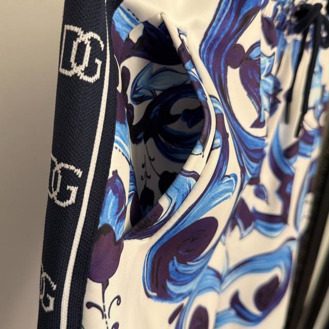 Style No. 20257431 Dg* New Set, Retro Pattern Blue and White Porcelain Print Stand Collar Long Sleeve Zipper Jacket + Elastic Waist Webbing Tapered Leg Trousers, Blue, Sizes S-XL, M: Shoulder Width 44cm, Chest 102cm, Sleeve Length 61cm, Length 68cm; Waist 68cm (elastic), Length 97cm; Weight: 1.140Kg DDD