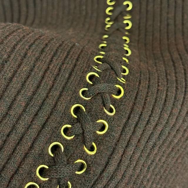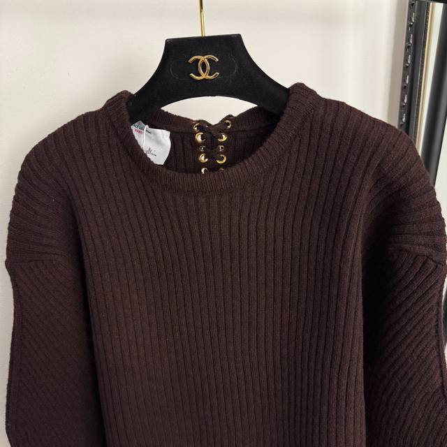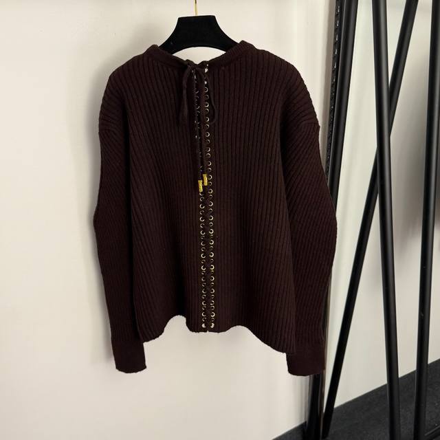 Style No. 20258043 Schiaparelli *New Long-Sleeved Pullover Knit Sweater with Back Tie Design, Black, Brown, One Size: Shoulder Width 47cm, Chest 112cm, Sleeve Length 59cm, Length 62cm; Weight: 0.740kg. DDD