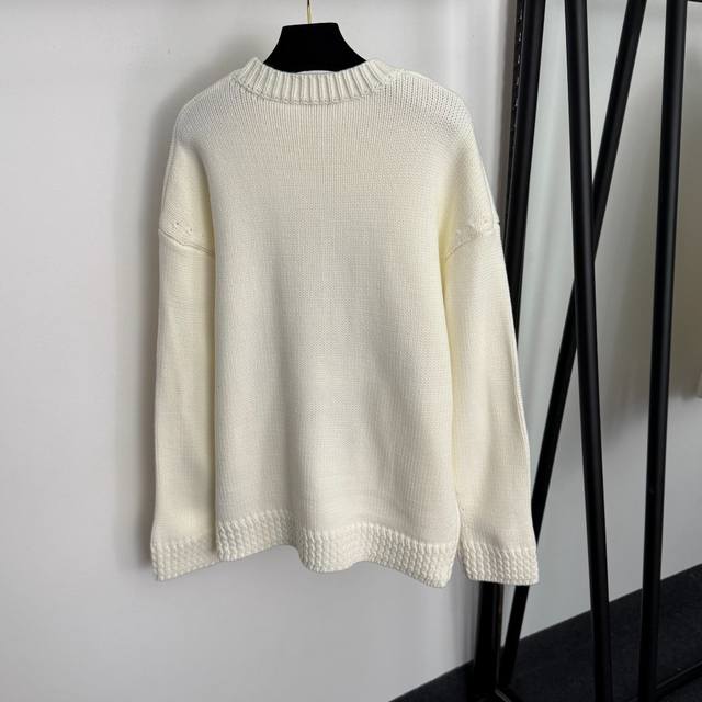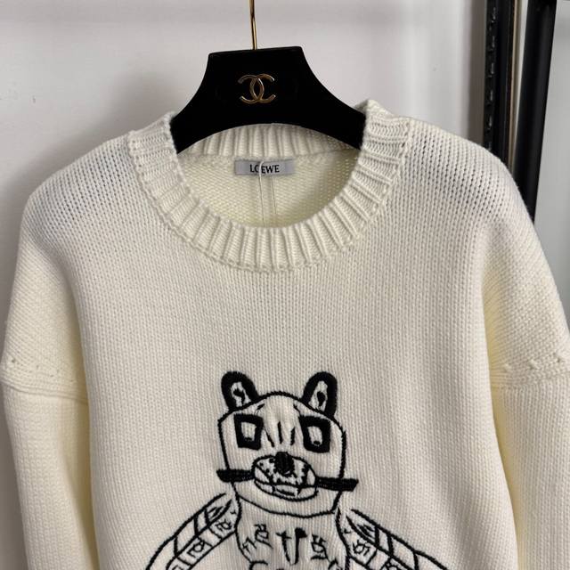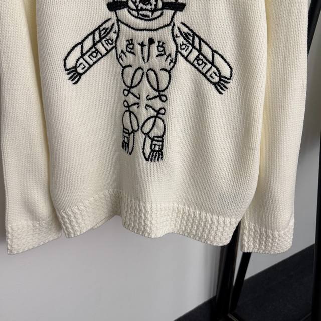 Style No. 20258167 Loew* New Robot Dog Embroidered Pattern Pullover Long-Sleeve Knit Sweater, Off-White, One Size: Shoulder Width 62cm, Chest 126cm, Sleeve Length 57cm, Length 71cm; Weight: 0.700Kg. DDD