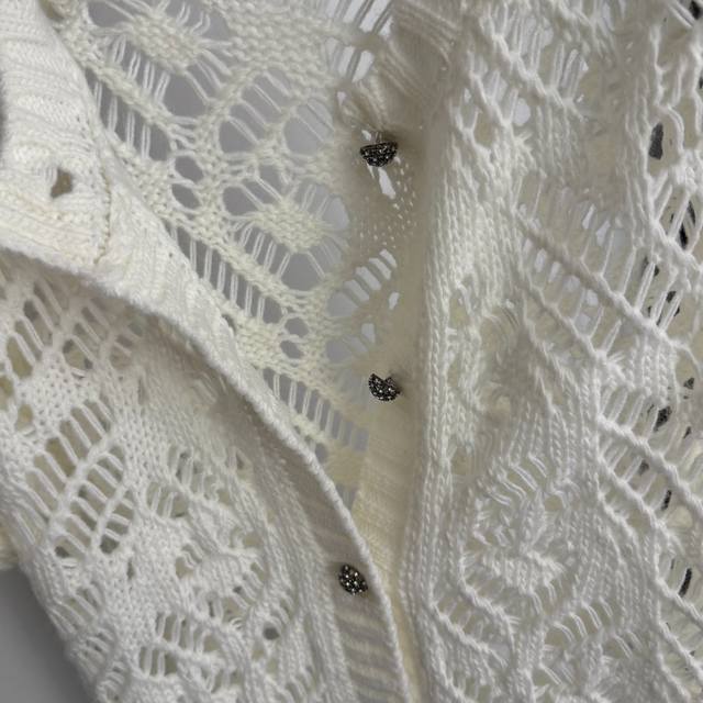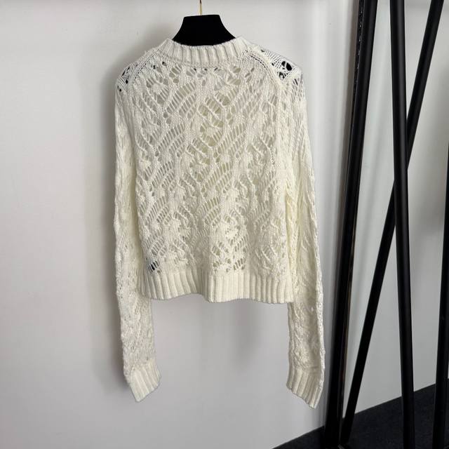 / Style No. 20258172 Dio* New Hollow-out Long-sleeved Knit Cardigan, Off-white, O