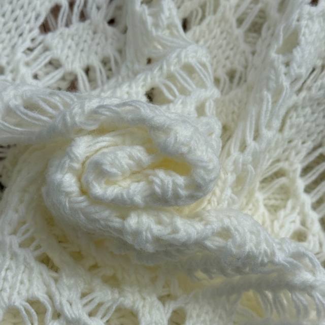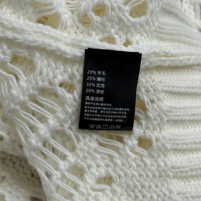 Style No. 20258172 Dio* New Hollow-out Long-sleeved Knit Cardigan, Off-white, One Size: Shoulder Width 38cm, Bust 106cm, Sleeve Length 75cm, Length 54cm; Weight: 0.360kg. DDD
