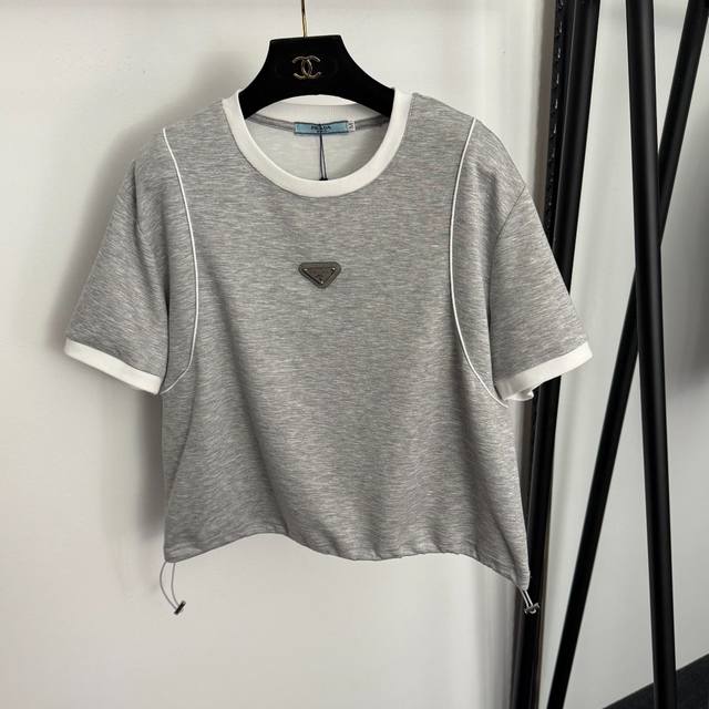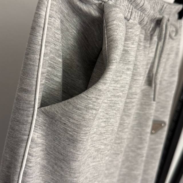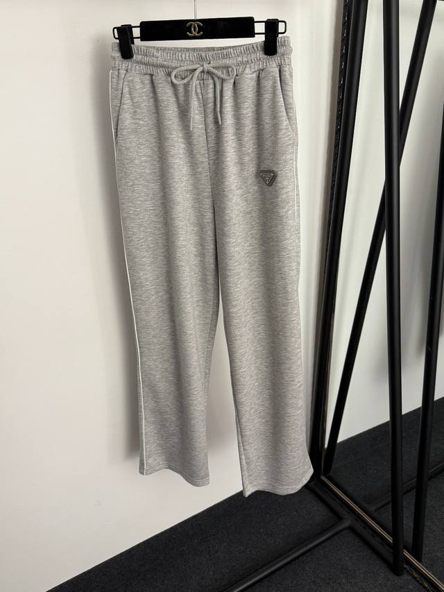 Style No. 20258274 prad* New sportswear set, metal logo triangle drawstring waist short-sleeved T-shirt + elastic waist casual trousers, gray, pink, black, S-XL, M size: shoulder width 45, chest 110, sleeve length 19, length 53; waist 66 elastic, length 100; weight: 0.565Kg DDD