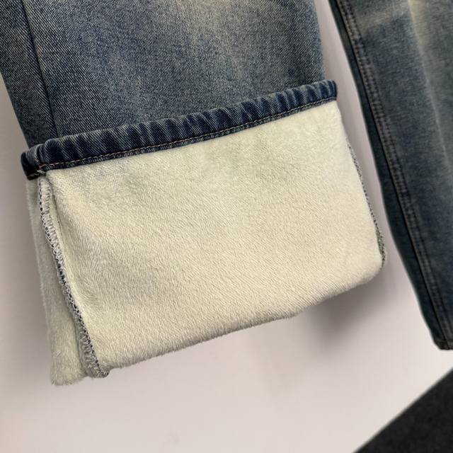 Style No. 20258298 Dio* New Retro Fashionable Versatile Jeans with Monogram Pockets, Fleece Lined for Warmth, Light Blue, Sizes S-XL, M: Waist 68cm, Length 106cm; Weight: 0.785kg. DDD