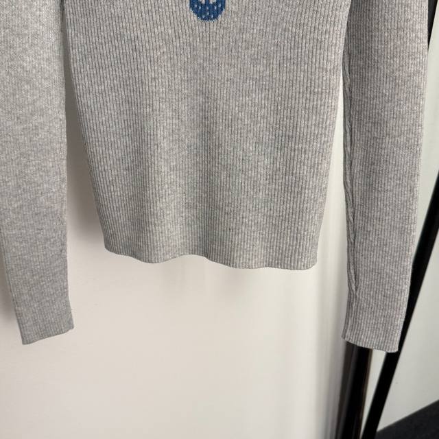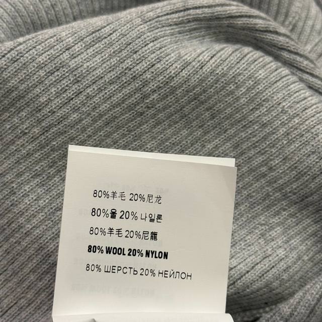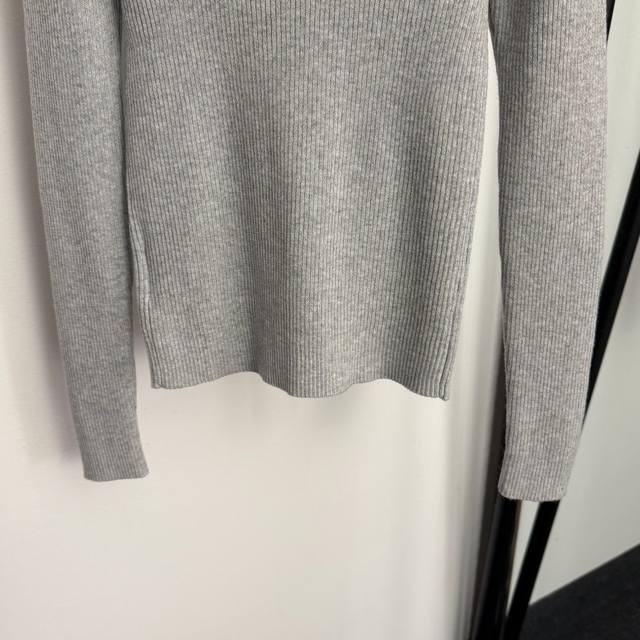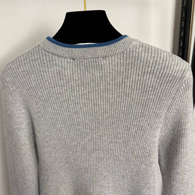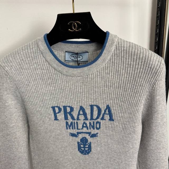 Style No. 20258303 prad* New Slim Fit Long Sleeve Wool Knit Sweater with Logo Lettering on Chest, Light Gray, Dark Gray, Red, Sizes 36, 38, 40. Size 36: Chest 68cm, Sleeve Length 59cm, Length 55cm; Weight: 0.340kg DDD