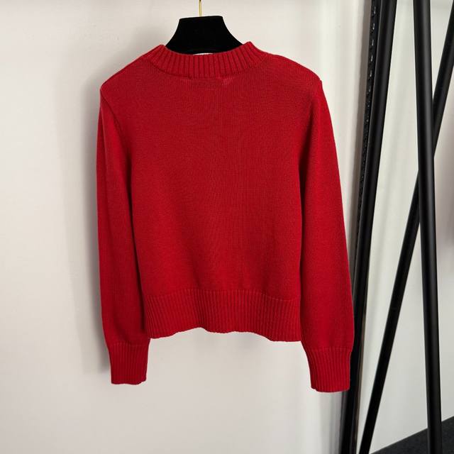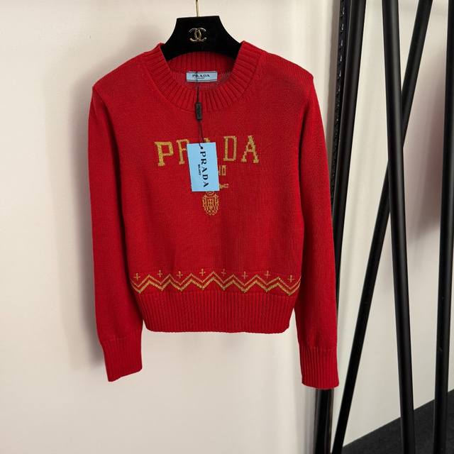 Style No. 20258306 prad* New Glitter Jacquard Letter Pullover Long-Sleeve Knit Sweater, White, Red, Blue, One Size: Shoulder Width 36cm, Chest 86cm, Sleeve Length 58cm, Length 52cm; Weight: 0.355Kg. DDD