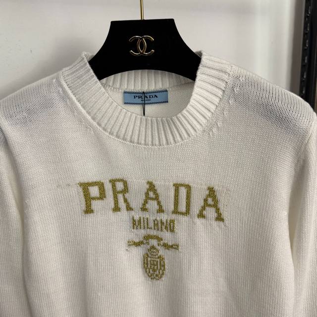 Style No. 20258306 prad* New Glitter Jacquard Letter Pullover Long-Sleeve Knit Sweater, White, Red, Blue, One Size: Shoulder Width 36cm, Chest 86cm, Sleeve Length 58cm, Length 52cm; Weight: 0.355Kg DDD
