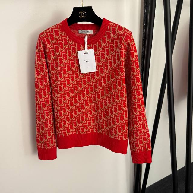 Style No. 20258310 Dio* New Dio monogram logo pullover long-sleeved knit sweater, grey, red, black, one size fits all: shoulder width 36cm, chest 90cm, sleeve length 58cm, length 53cm; weight: 0.320kg. DDD