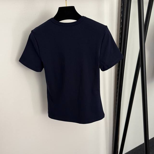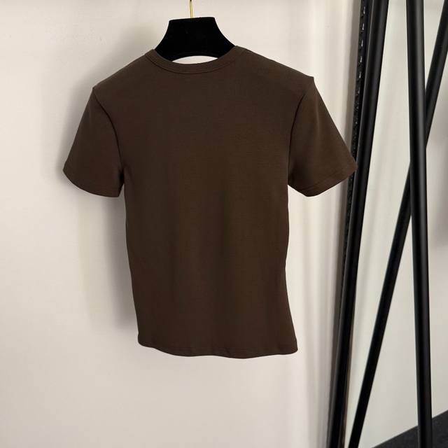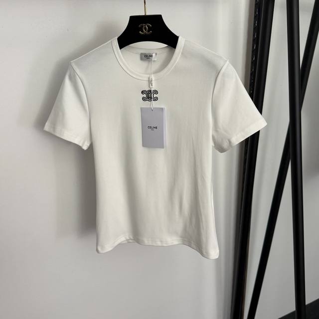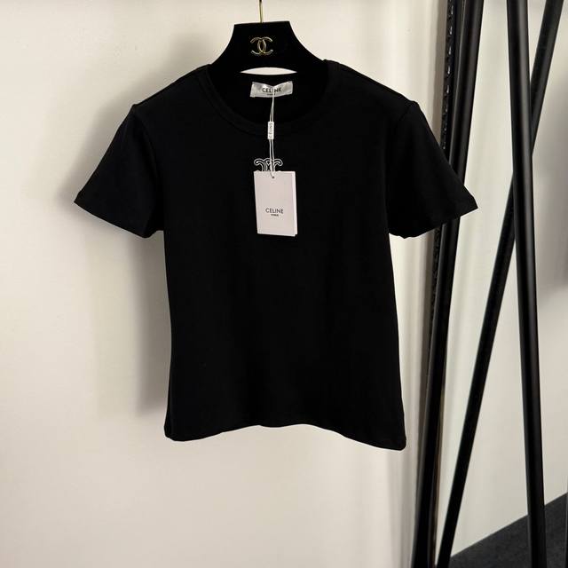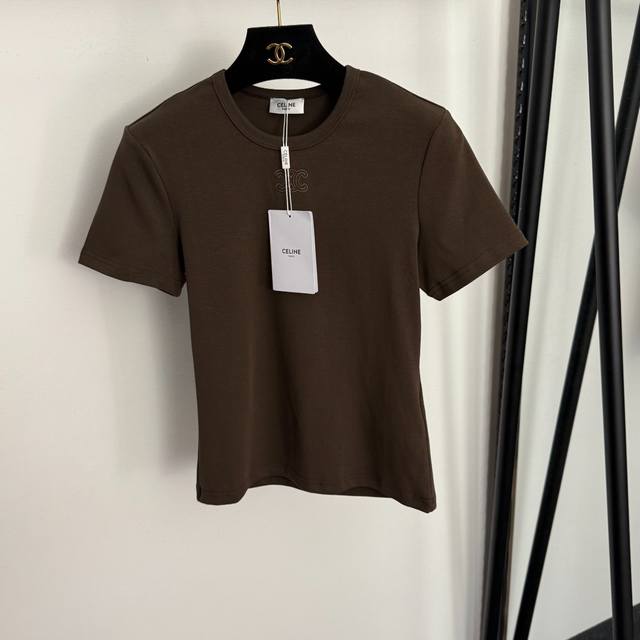 Style No. 20258323 Celin* New Logo Embroidered Slim Fit Short Sleeve T-Shirt, White, Blue, Brown, Black, Sizes S, M, L. Size S: Chest 78cm, Sleeve Length 17cm, Length 53cm; Weight: 0.150kg DDD