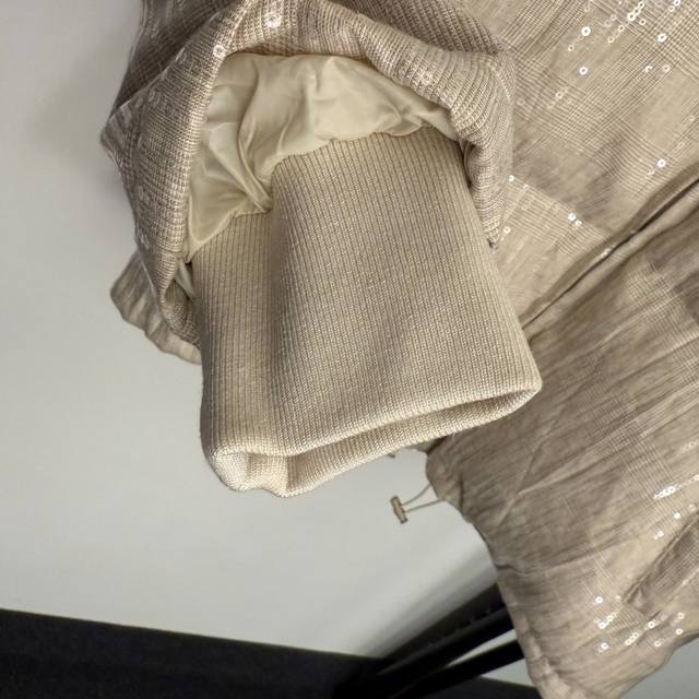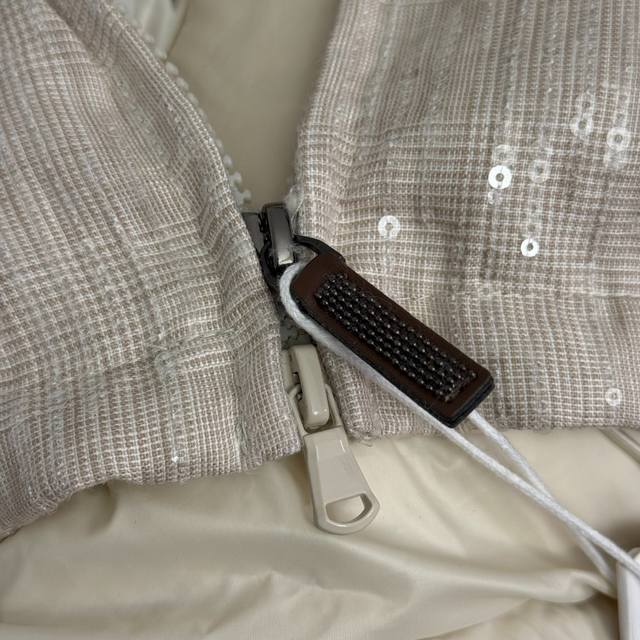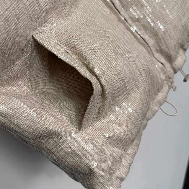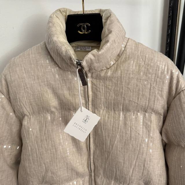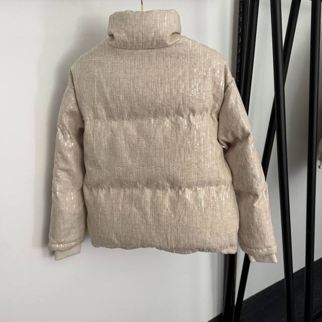 Style No. 20258402 Brunello Cucinell*Bc New Heavy-Duty Sparkling Sequined Stand Collar Long-Sleeved Down Jacket, Apricot, Sizes S, M, L. Size S: Shoulder Width 49cm, Chest 112cm, Sleeve Length 55cm, Length 62cm; Weight: 0.765kg DDD