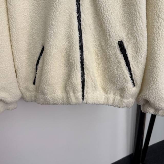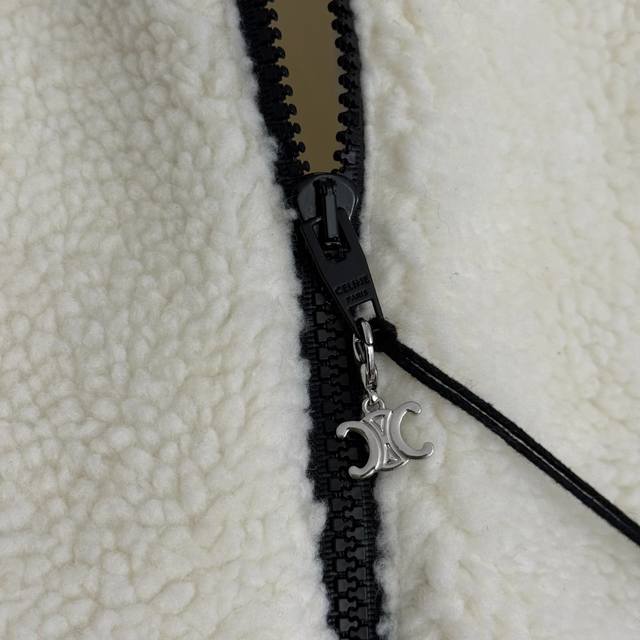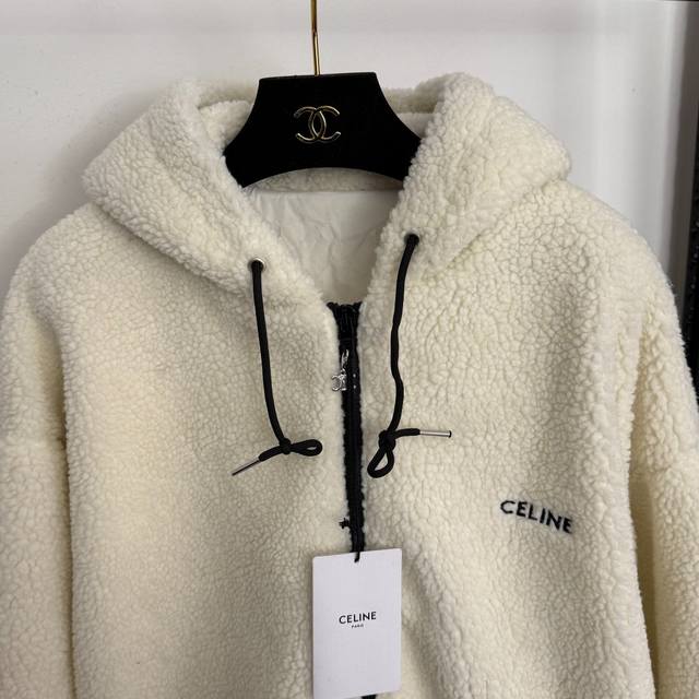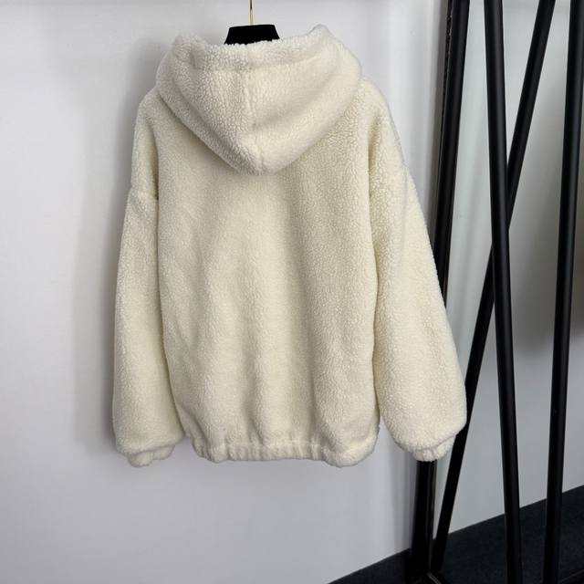 Style No. 20258404 Celin* New Logo Embroidered Letter Lambswool Long-Sleeve Hooded Zip-Up Jacket, Off-White, Sizes S, M, L, 38: Shoulder Width 61cm, Chest 126cm, Sleeve Length 55cm, Length 58cm; Weight: 1.055Kg DDD