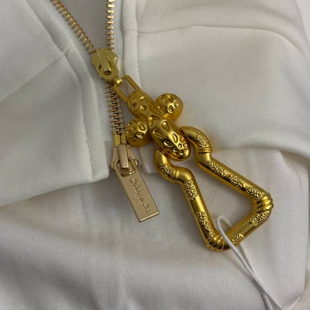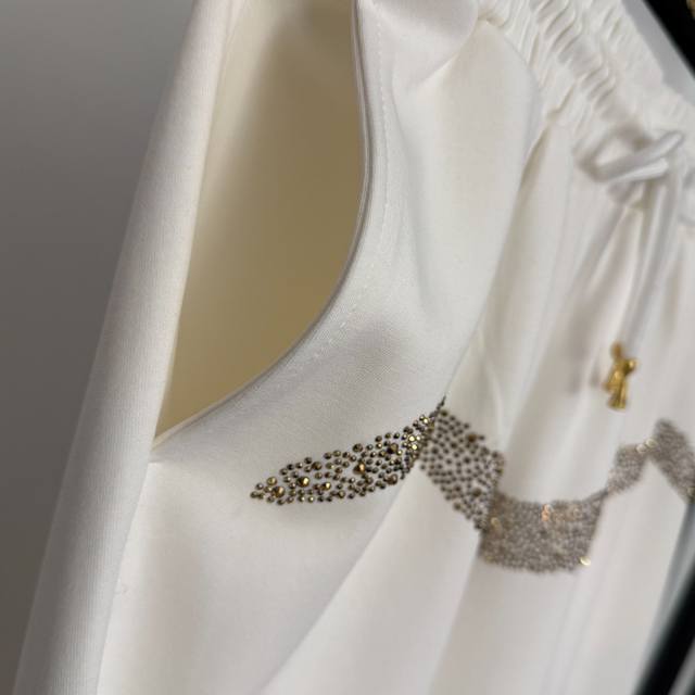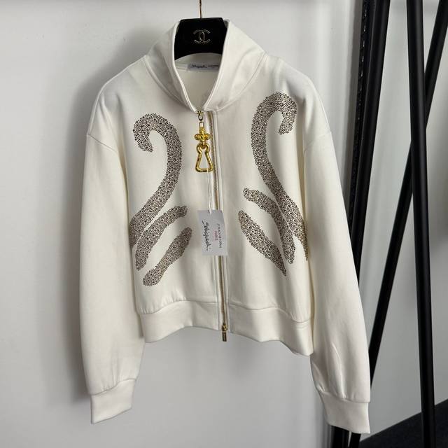 Style No. 20258470 Schiaparelli* New Tracksuit: Heavy-duty rhinestone pattern, large metal zipper, stand-up collar, long-sleeved jacket + elastic waist, tapered trousers. Available in white, black, and brown. Sizes S, M, and L. M: Shoulder width 52cm, Chest 116cm, Sleeve length 59cm, Length 55cm; Waist 66cm (elastic), Length 109cm; Weight: 1.185kg. DDD