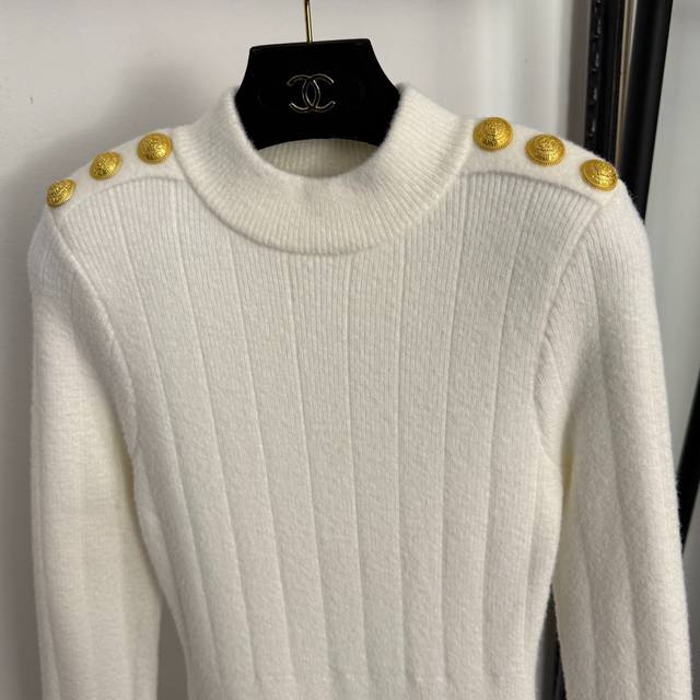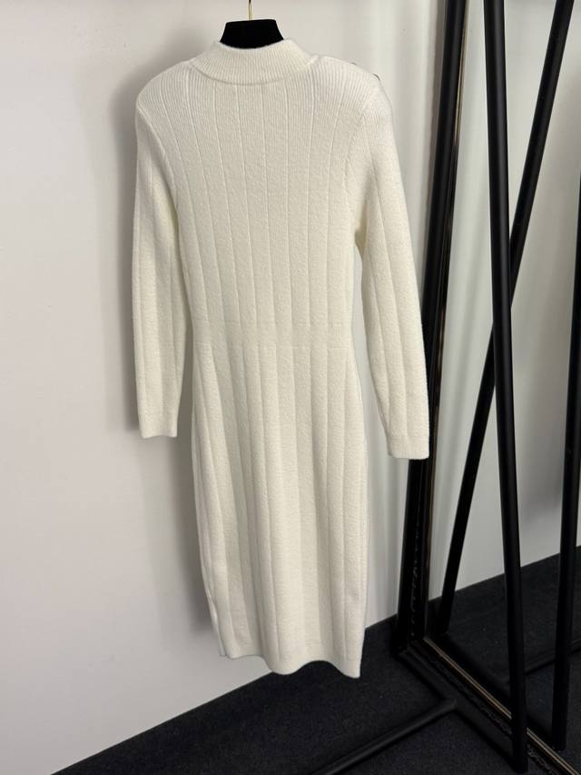 Style No. 20259256 Balmai *New Shoulder Button-Down, Waist-cinching Slimming Knit Long-Sleeve Dress with Shoulder Pads, Available in White, Rose Red, Light Green, Brown, and Black, Sizes S-XL. Size M: Bust 70cm, Sleeve Length 56cm, Length 107cm; Weight: 0.755kg DDD