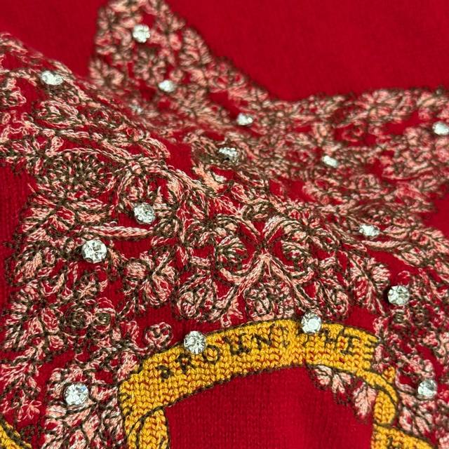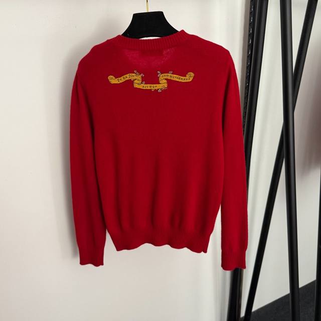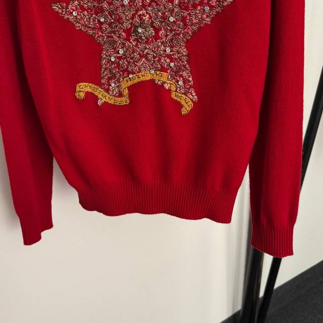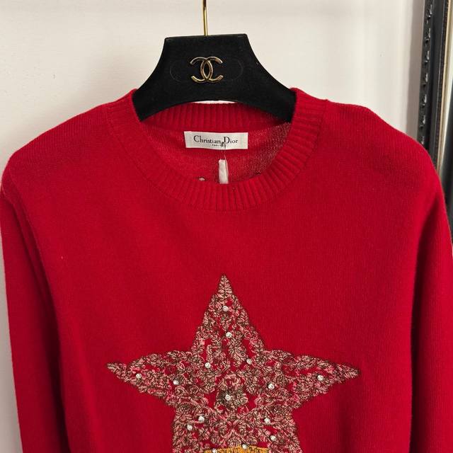 Style No. 20259271 Dio* New Rhinestone Embroidered Five-Pointed Star Pullover Long-Sleeve Wool and Cashmere Knit Sweater, Red, Sizes S, M, M: Shoulder Width 38cm, Chest 92cm, Sleeve Length 58cm, Length 57cm; Weight: 0.200Kg DDD