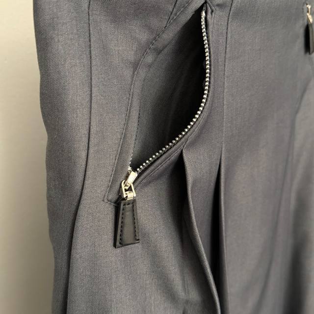Style No. 20259288 prad* New logo triangle-decorated zippered high-waisted suit skirt, grey, black, S-XL, Size M: Waist 68cm, Length 86cm; Weight: 0.480kg. DDD