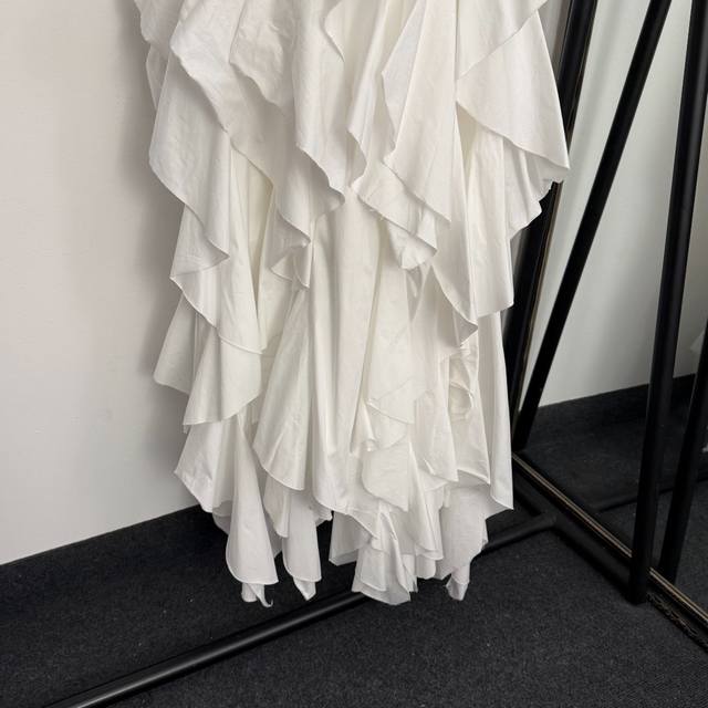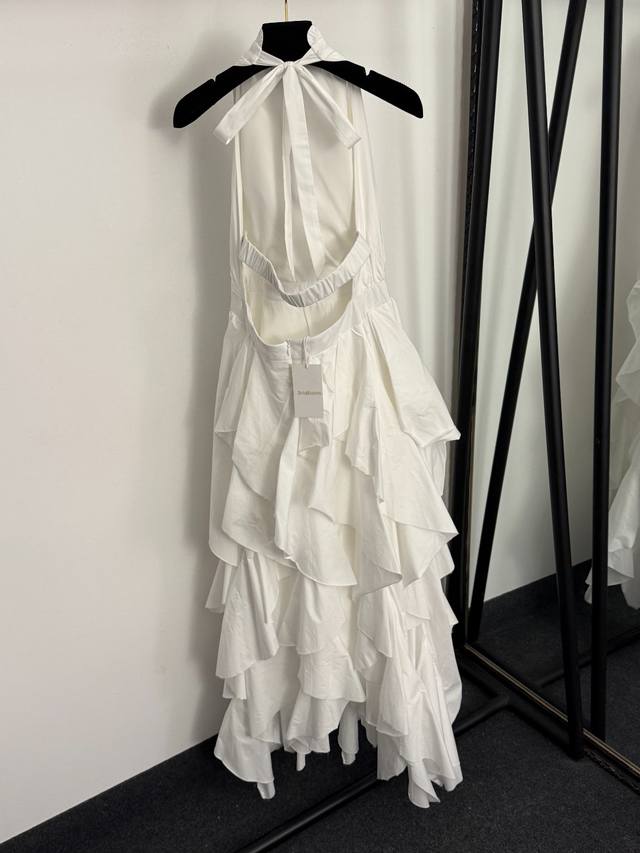 Style No. 20259293 Zimmermann* New Irregular Ruffle Hem High Neck Halter Neck Backless Sleeveless Puffy Dress, White, Rose Red, Yellow, Black, S-XL, Size M: Waist 74cm, Length 132cm; Weight: 0.810Kg DDD