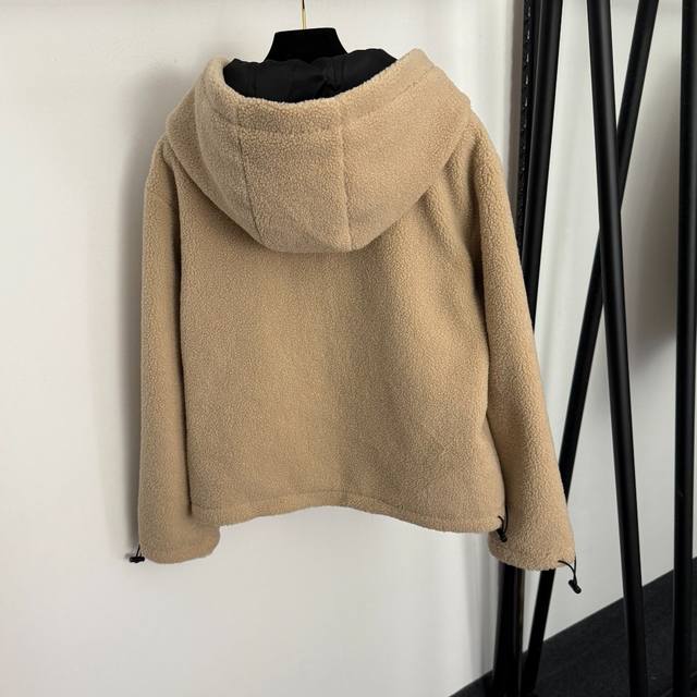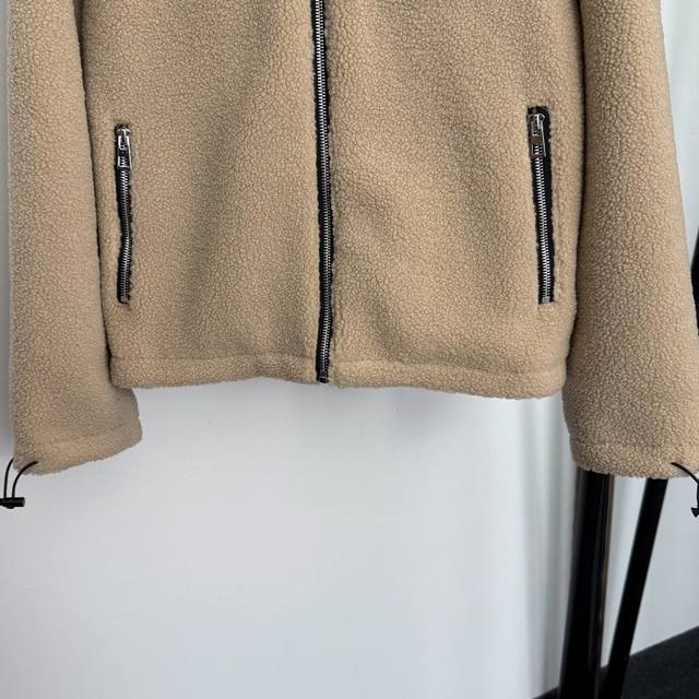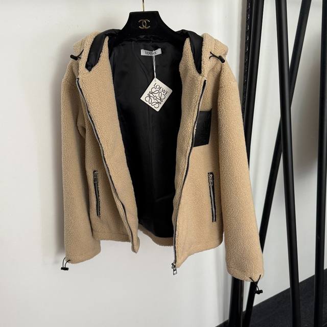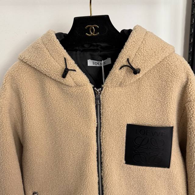 Style No. 20259310 Loew* New Patchwork Logo Single Pocket Long-Sleeve Hooded Lambswool Zip-Up Jacket, Khaki, Sizes S, M, L. Size M: Shoulder Width 48cm, Chest 108cm, Sleeve Length 56cm, Length 58cm; Weight: 0.805kg. DDD