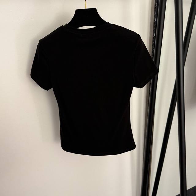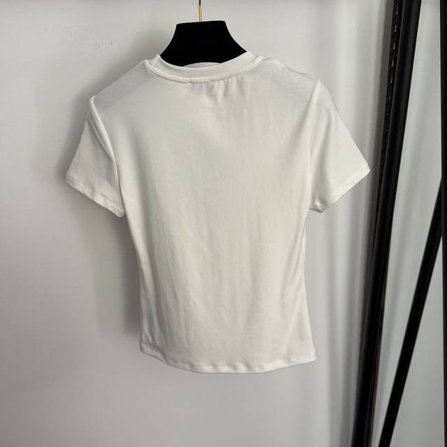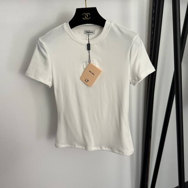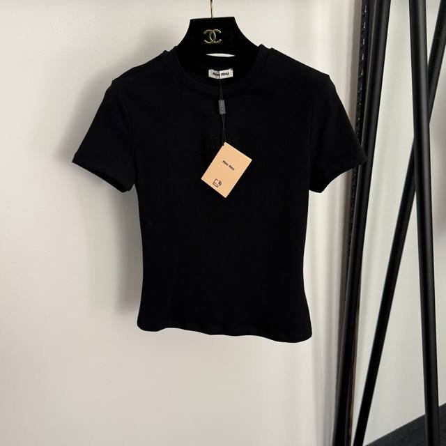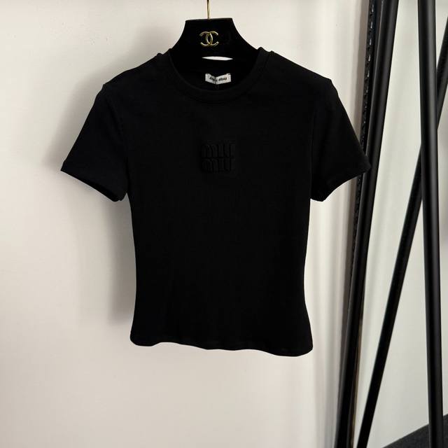 Style No. 20259326 Miumi*New 3D Logo Embossed Letter Slim Fit Short Sleeve T-Shirt, White, Black, Sizes S-XL, Size M: Chest 76cm, Sleeve Length 16cm, Length 52cm; Weight: 0.140kg DDD