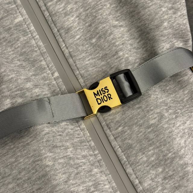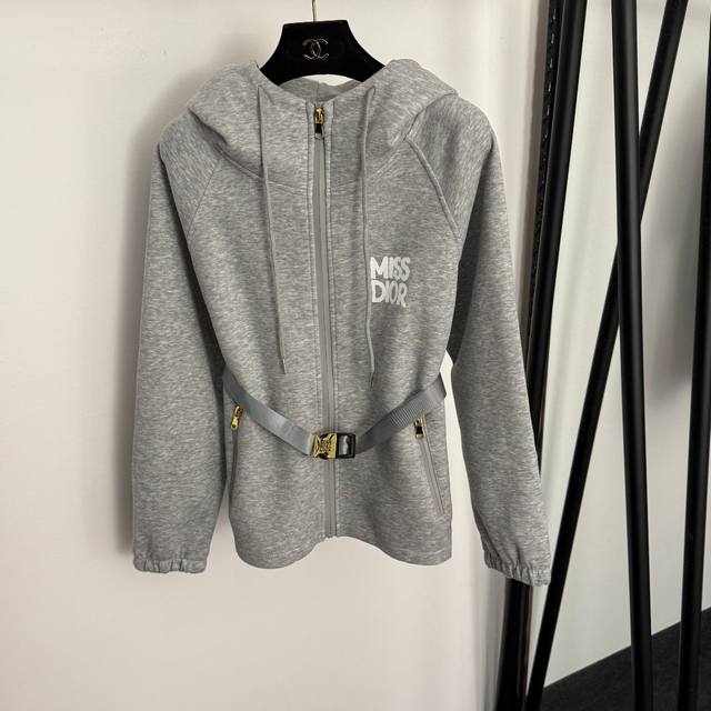 Style No. 20259331 Dio* New Set: Painted Miss Letter Print Long-Sleeved Hooded Zip-Up Jacket + Elastic Waist Casual Jogger Pants with Safety Buckle Belt, Gray, Black, Sizes S, M, L. Size M: Chest 106cm, Sleeve Length 65cm, Length 58cm; Waist 64cm (Elastic), Length 98cm; Weight: 0.940kg DDD