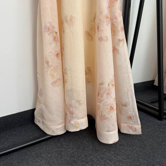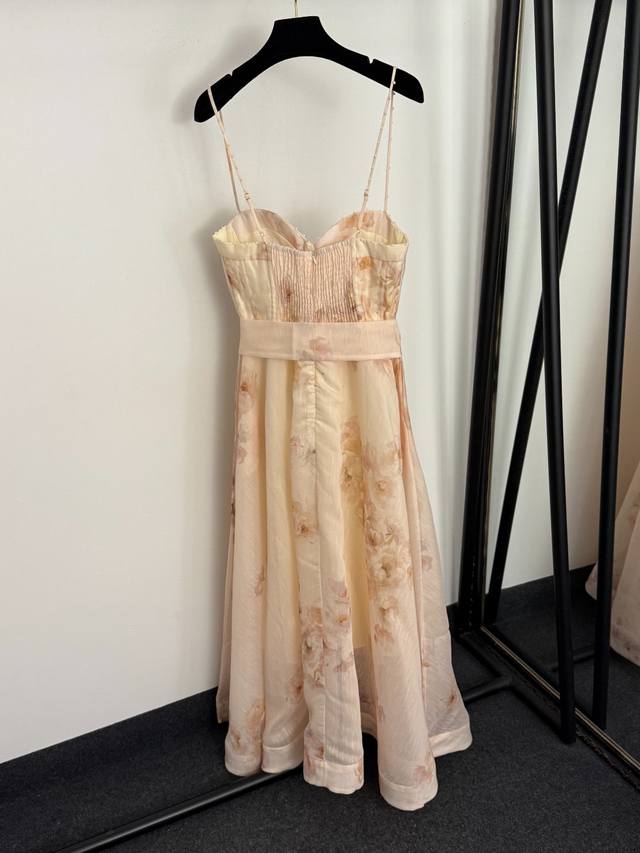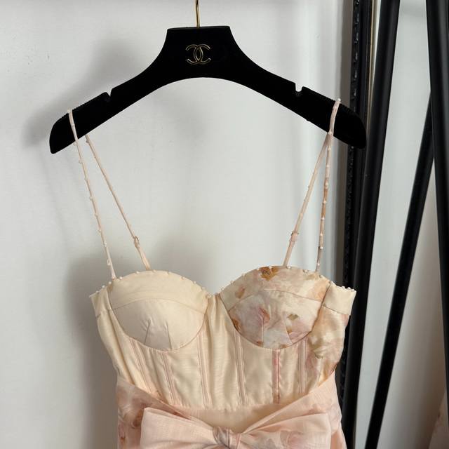 Style No. 20259332 Zimmermann*New Fresh Floral Print Beaded Strapless Silk Linen Dress, Apricot, Sizes S-XL, M: Bust 80 (elastic), Waist 74 (elastic), Length 118cm; Weight: 0.530kg. DDD