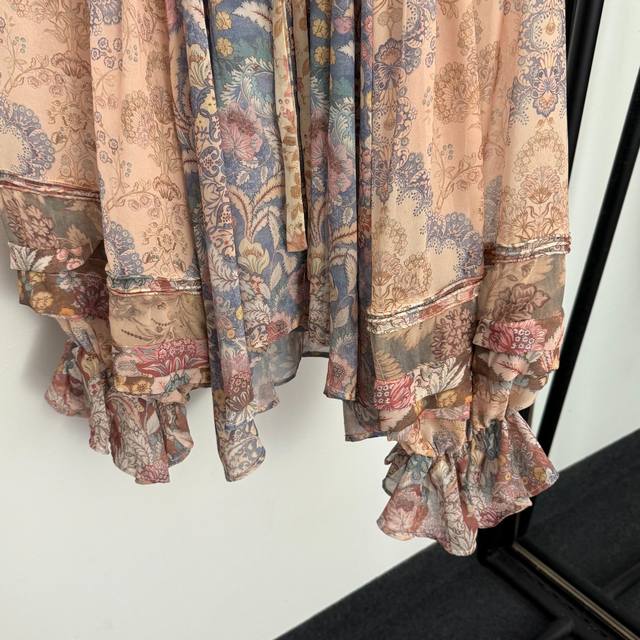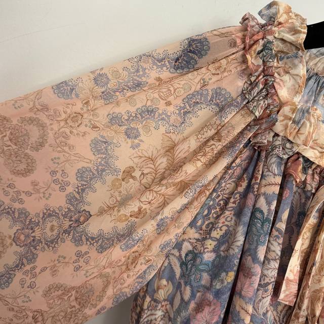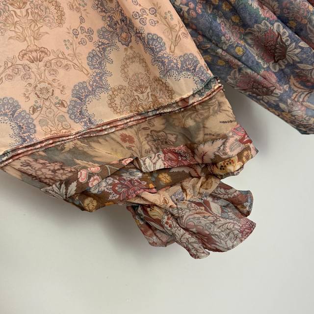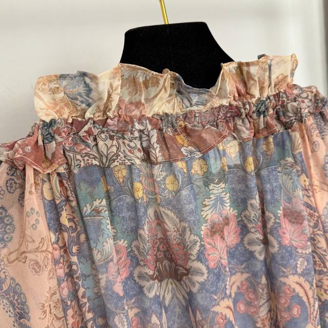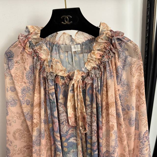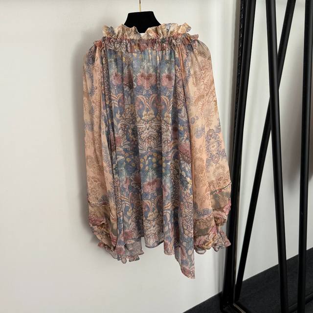Style No. 20259333 Zimmermann *New Retro Floral Print Tie-Waist Ruffled Collar Lantern Long-Sleeve Shirt Top, with Camisole Lining, Light Pink, S-XL, M Size: Bust 86cm, Length 32cm; Bust 146cm, Sleeve Length 72cm, Length 71cm; Weight: 0.285Kg DDD