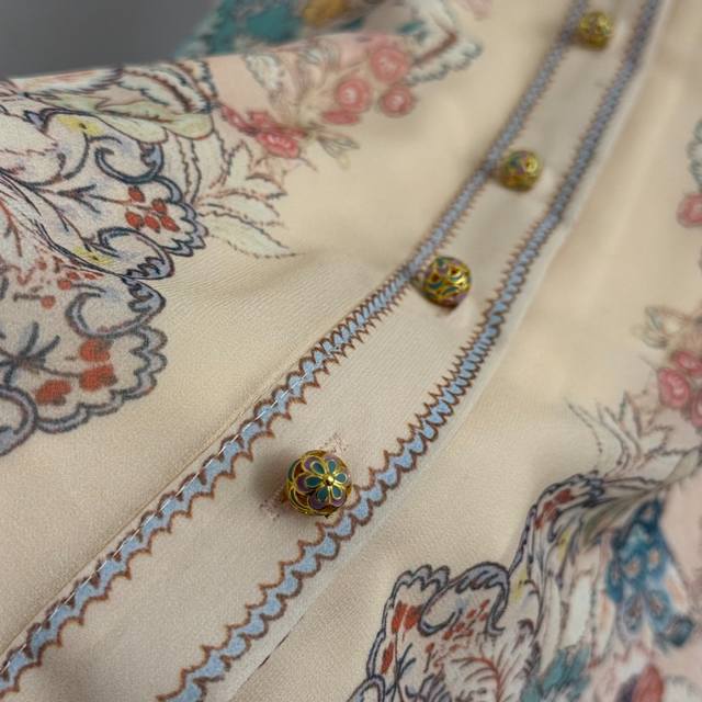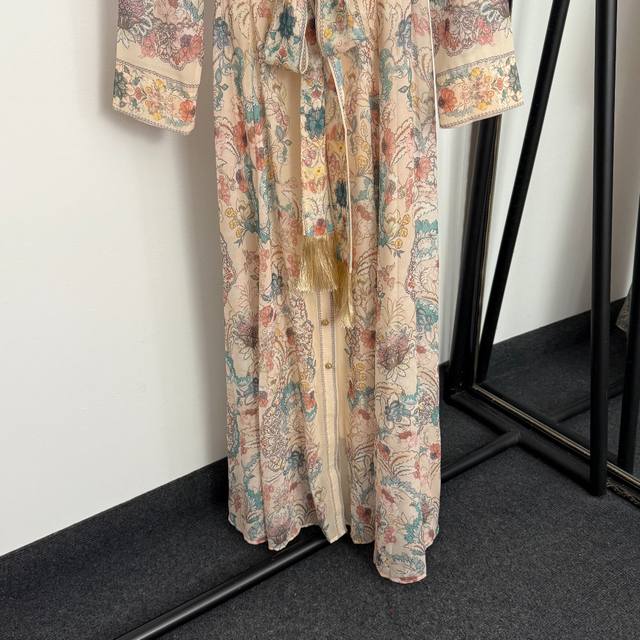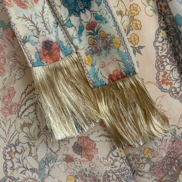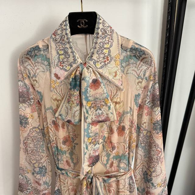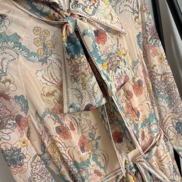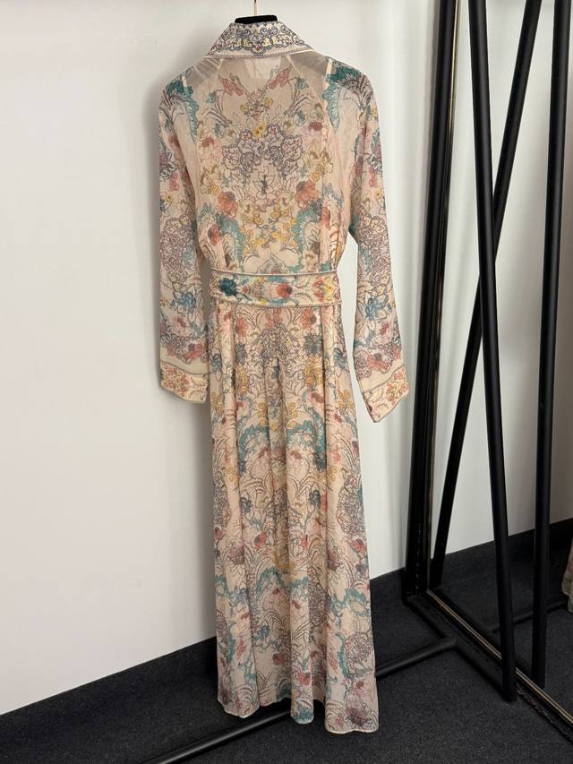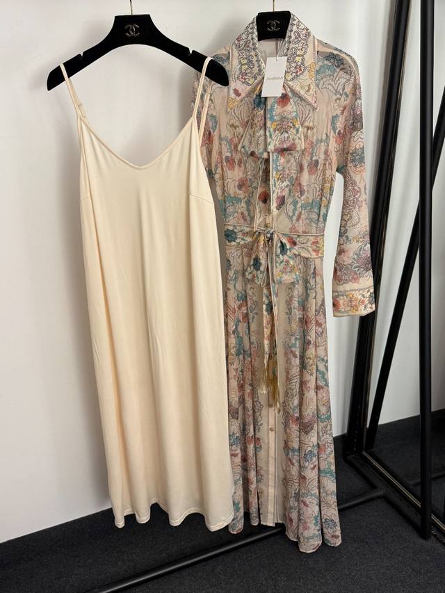 Style No. 20259334 Zimmermann *New Retro Colorful Floral Print Tie-Waist Lapel Long-Sleeve Shirt Dress, with Camisole Lining, Apricot, Sizes S-XL, M: Bust 94cm, Length 105cm; Bust 90cm, Sleeve Length 72cm, Length 146cm; Weight: 0.525kg DDD