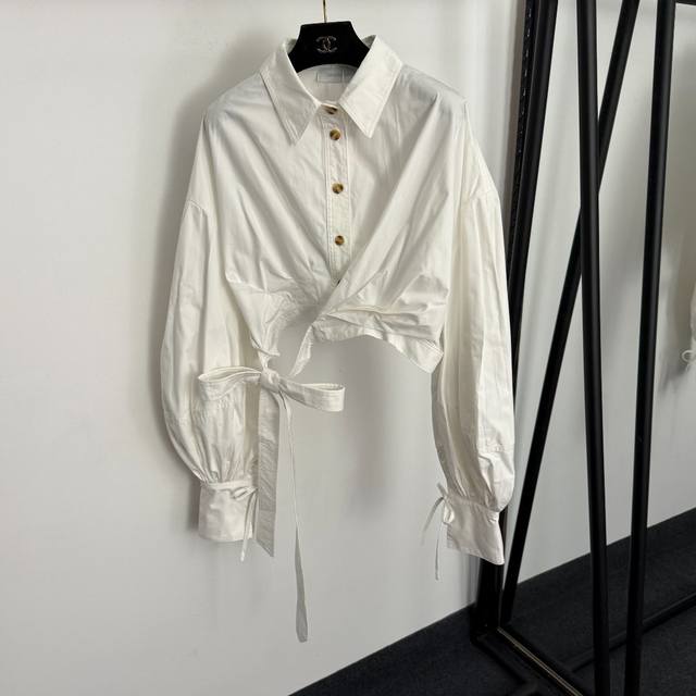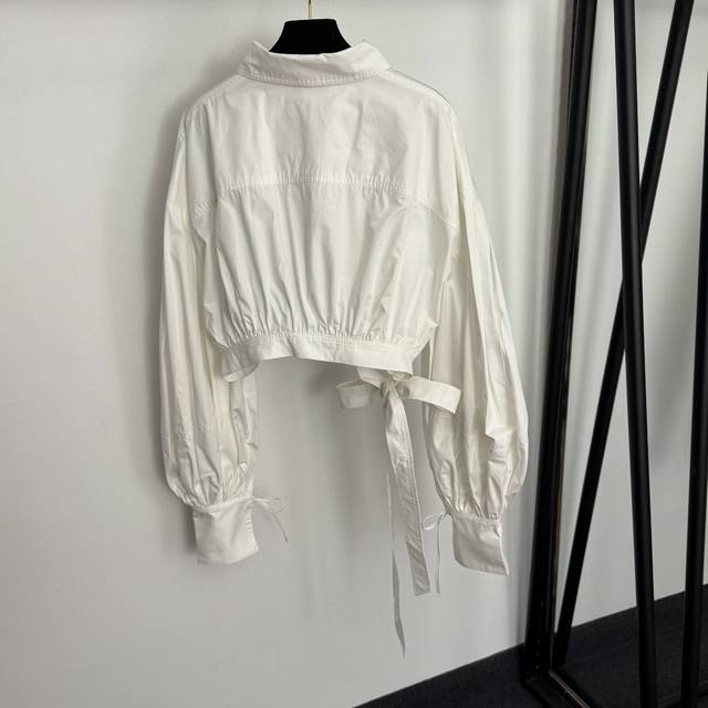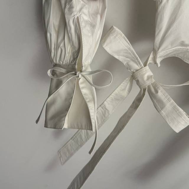 Style No. 20259335 Zimmermann* New Set: Bow-tie elegant lantern-sleeved short-sleeved shirt + side-button slit elastic waist wide-leg trousers, white, S-XL. Size L: Shoulder width 63cm, Bust 108cm, Sleeve length 64cm, Length 42cm; Waist 70cm (elastic), Length 109cm; Weight: 0.910Kg DDD