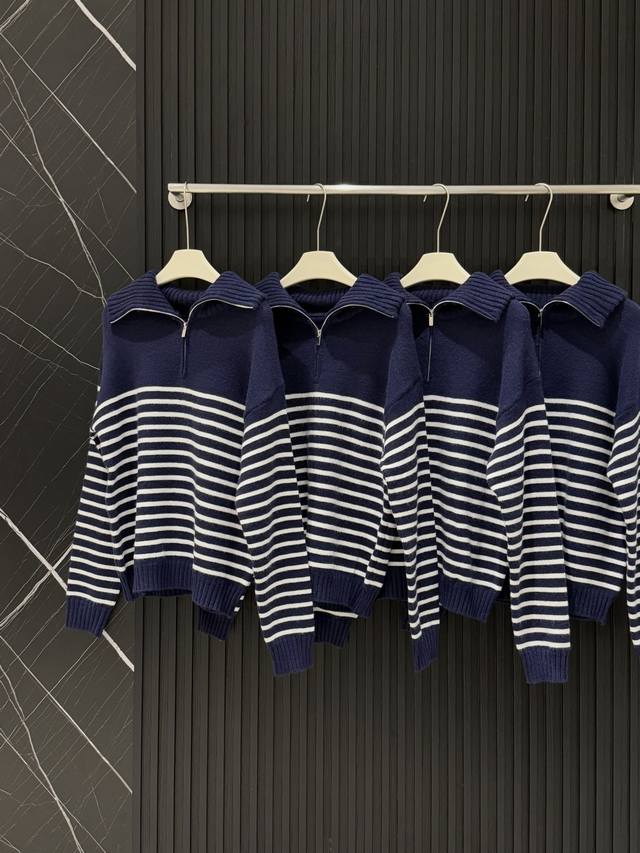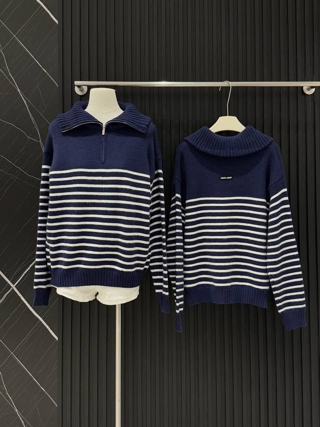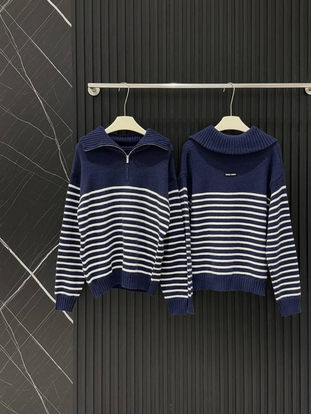 Style No. 3552 Hot Seller Miumi* 25Fw New Early Autumn Preppy Style Striped Swe