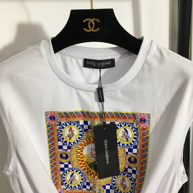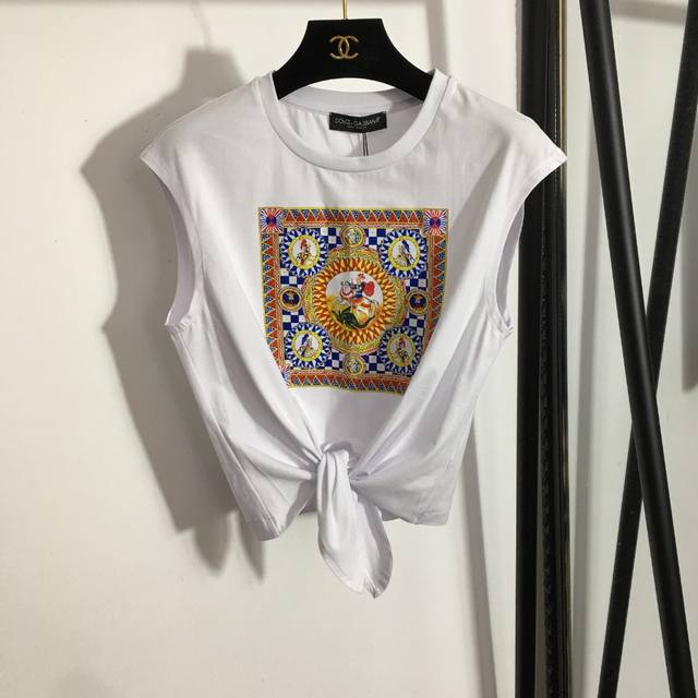 Style No. 5590 Dg* New Year Retro Print Waisted Sleeveless Tank T-shirt, White, Sizes S-Xl, M; Chest 90, Length 48