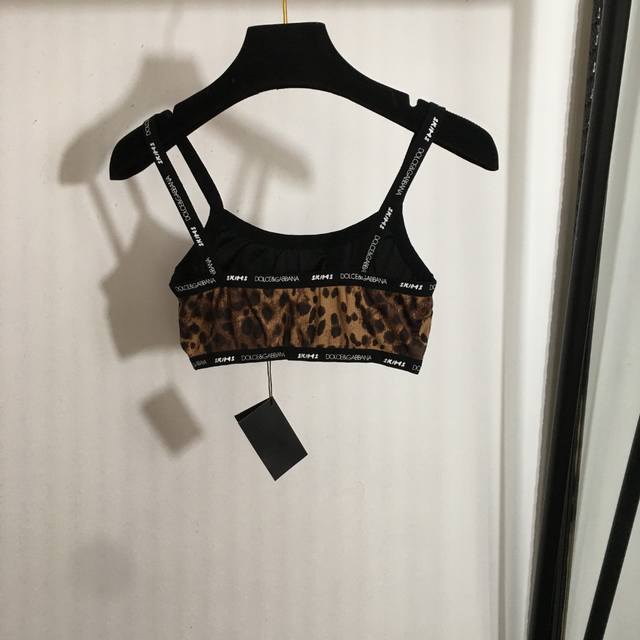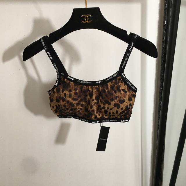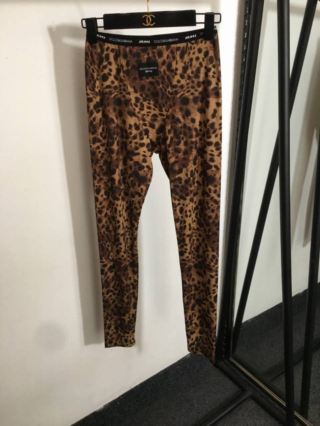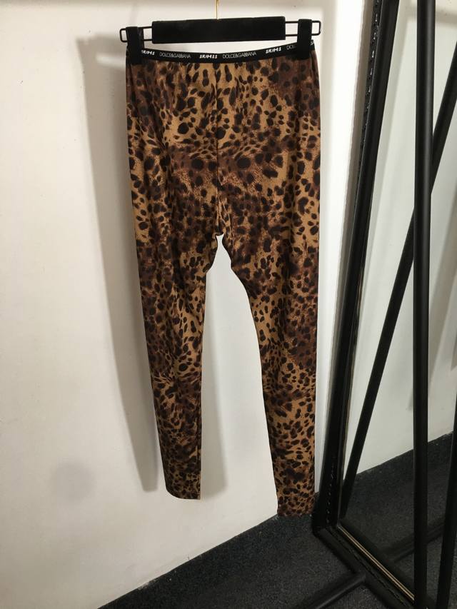 Style No. 8513 Dg X Skims Collaboration New Yoga Workout Set, Leopard Print Camisole Top + Letter Webbing Waist Elastic Leggings, Brown, S-XL, Size S; Bust 62cm, Length 27cm; Waist 56cm (elastic), Length 94cm. DDD