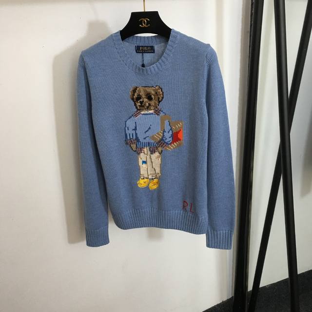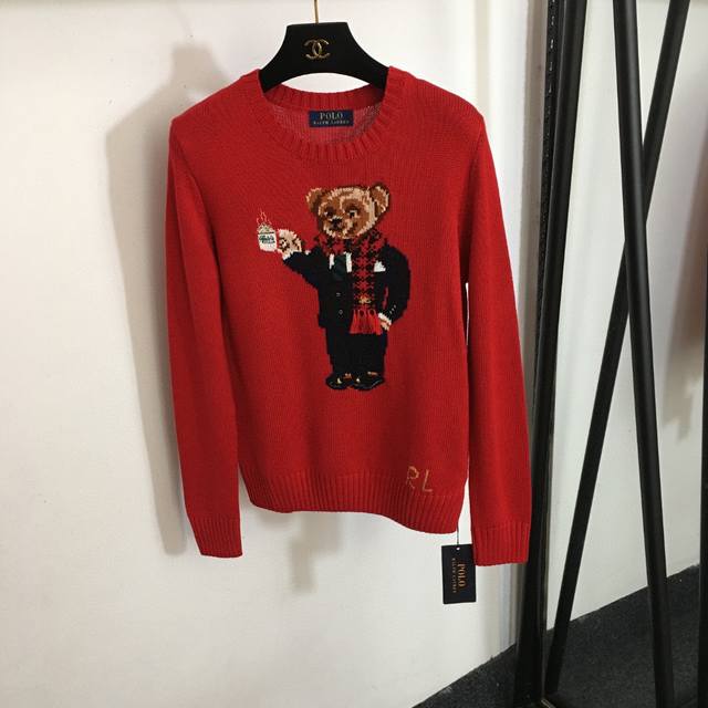 Style No. 9547 Polo Ralph Lauren new handsome human-shaped bear jacquard pattern long-sleeved pullover wool sweater autumn and winter base shirt, red, white, blue, khaki, coffee, black skiing bear, black plaid bear Sml, size S; shoulder width 37, chest 90, sleeve length 60, length 60