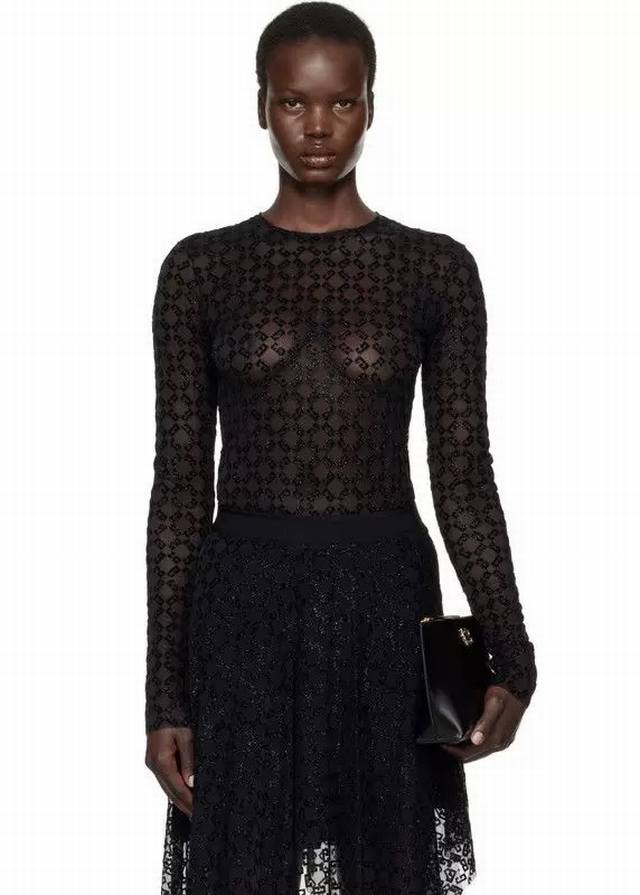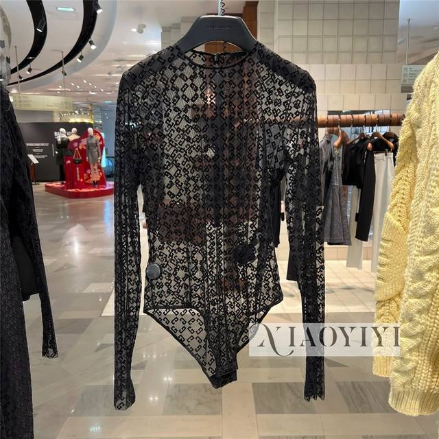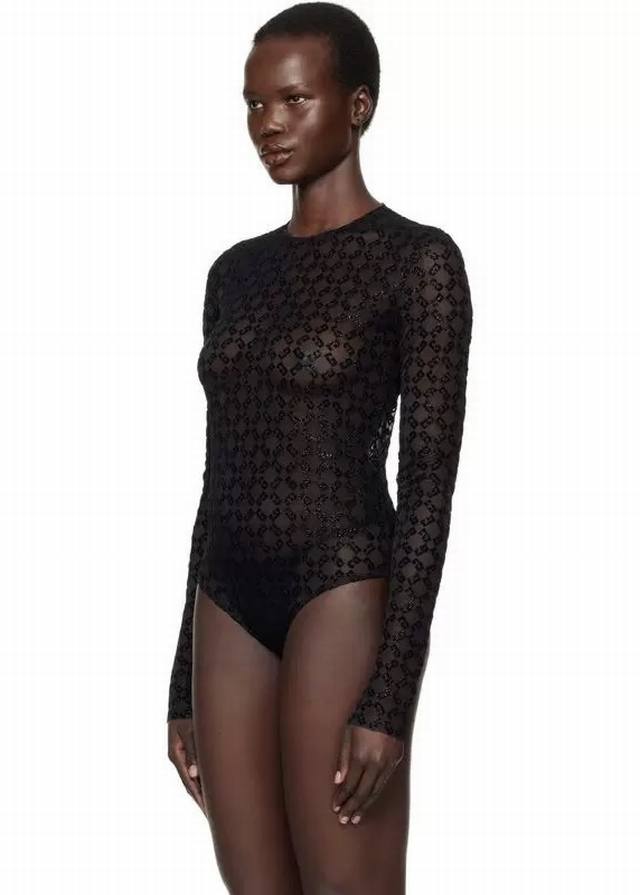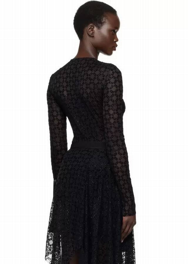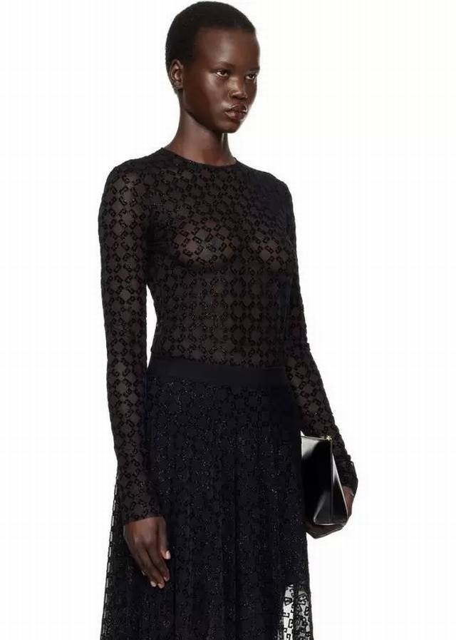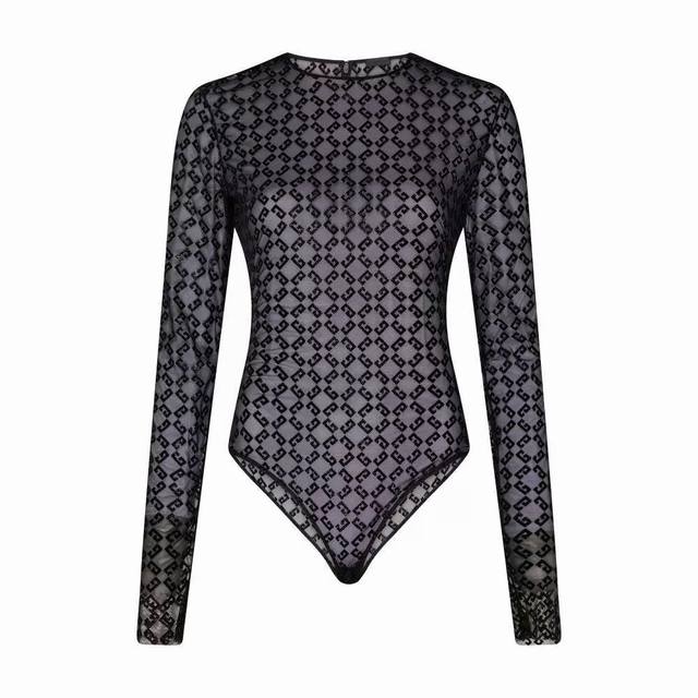 Style No. D25041728 Givench*Y Givenchy's new all-over G letter flocking mesh see-through jumpsuit elastic tights Pp! Burgundy, khaki, black, M size: bust 86, sleeve length 64, pants length 68