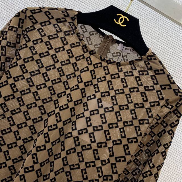 / Style No. D25041728 Givench*Y New G Letter Flocking Mesh Transparent Bodysuit E