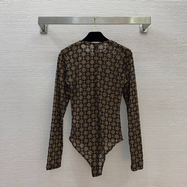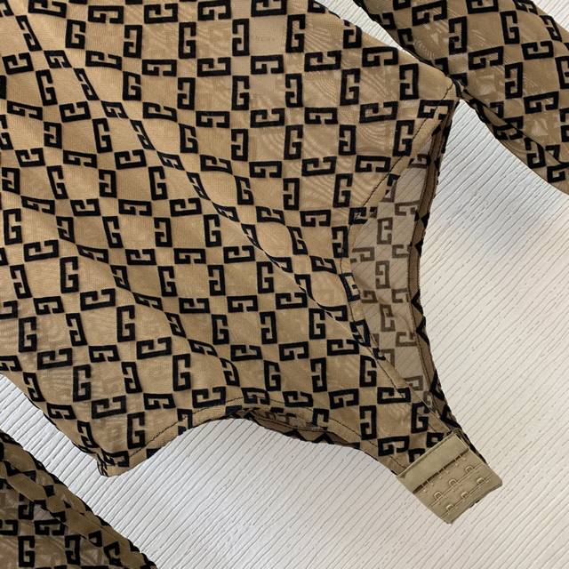Style No. D25041728 Givench*Y New G Letter Flocking Mesh Transparent Bodysuit Elastic Tights Pp! Burgundy, Khaki, Black, M Size: Bust 86, Sleeve Length 64, Pants Length 68