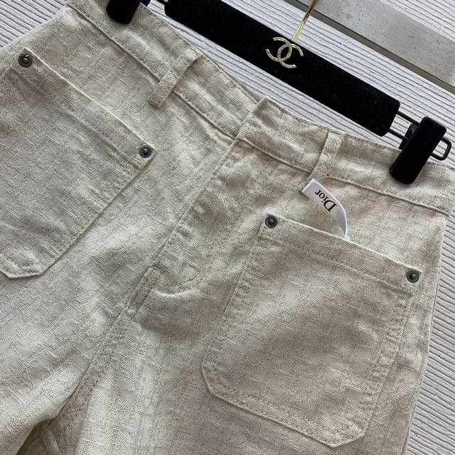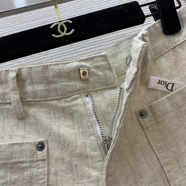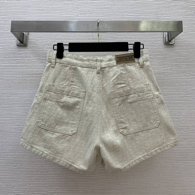 Style No. D25041754 Dio* newest high-end custom gold jacquard denim fabric, fashionable and versatile double pocket high waist wide leg denim shorts! Apricot, M size: waist 72, pants length 33