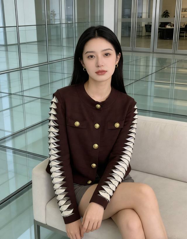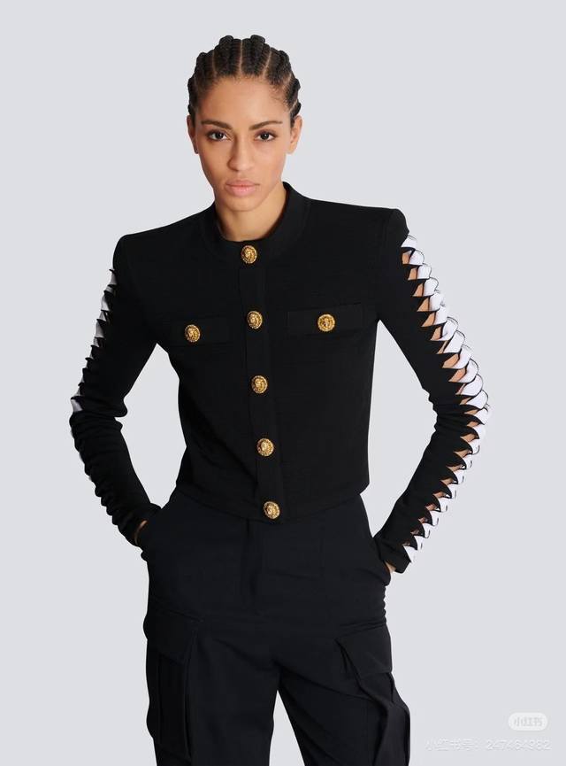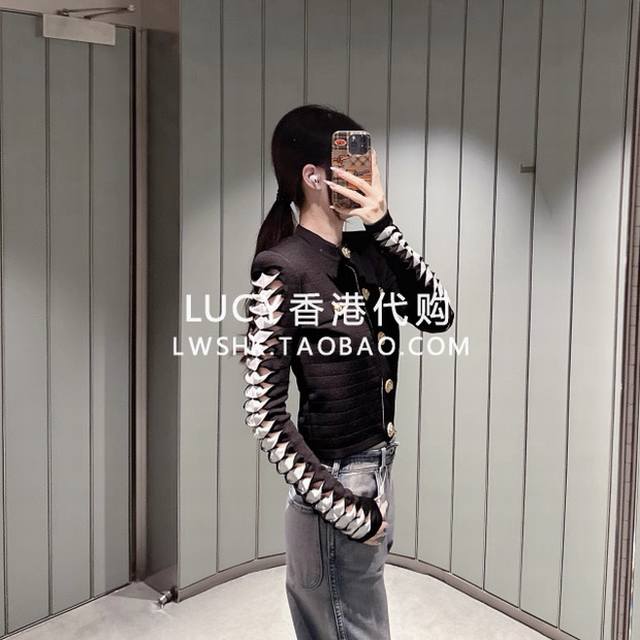 Style No. D26011638 Balmai* New Classic Lion Head Button Cuffs with Unique Design, Short-Sleeved Knit Cardigan! Coffee, Black, Size M: Shoulder Width 37cm, Bust 88cm, Sleeve Length 60cm, Length 48cm (DDD)