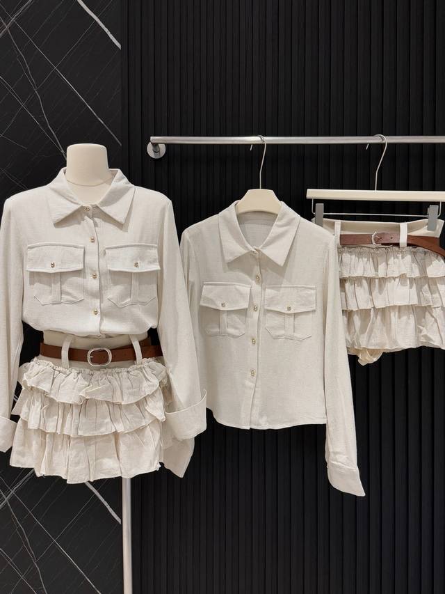 Style number 3370 Set French style loose top and cake skirt two-piece set Linen
