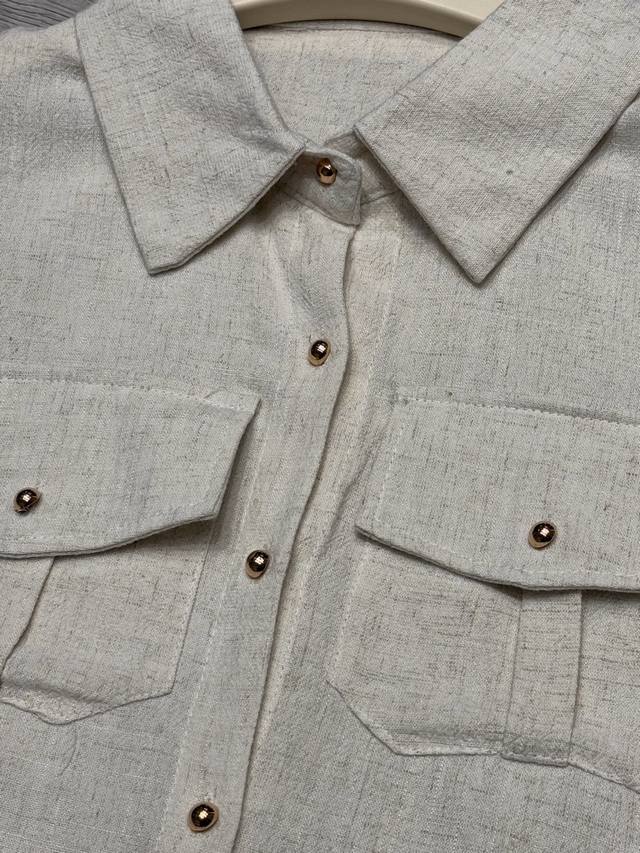 Linen shirt with a slightly straight shoulder feel, which can also modify the sloping shoulders