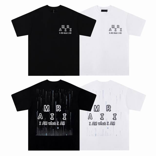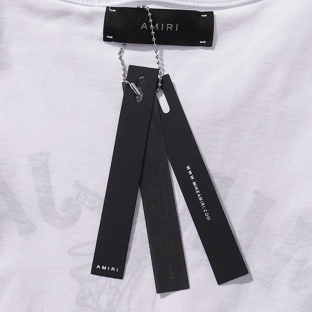 Amiri 2025 Spring and Summer New Logo Round Neck T-shirt High Street Unisex Loose Classic Letter Print Firework Short Sleeve