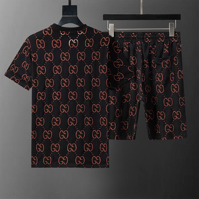2025 spring and summer new men's casual short-sleeved shorts suit, two-color fabric, laser burning to show the base color, fashionable and handsome style, comfortable fabric, rigorous workmanship, neat stitching. Good effect on the body