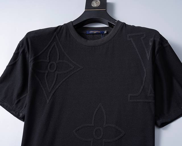 2025 spring and summer new men's T-shirt, large old flower jacquard fabric, fashionable and handsome style, comfortable fabric, rigorous workmanship, neat stitching. Good effect on the body