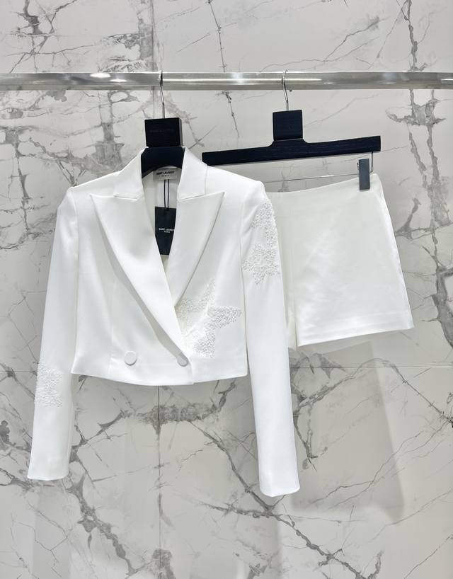 Suit p Ddd Shorts p400 * Saint Laurent 2026 Early Spring New Hand-Beaded Short Suit DDD The exquisite hand-beaded sequins are deeply attractive! Each sequin sparkles with a mesmerizing light, like the brightest star in the night sky, making it impossible to look away! DDD The colors of the suit are also super fitting for the season! White and classic black, each one is irresistible! DDD The short design is super flattering, easily lengthening the leg lines and making you instantly have long legs! Whether paired with high-waisted pants or an A-line skirt, it can be easily styled, exuding a fashionable vibe! DDD The suit is also impeccable! The exquisite craftsmanship of the hand-beaded sequins reveals Saint Laurent's high quality in every detail! Wearing it, you will be the most stylish person on the street this early spring! DDD Sizes: Sml DDD Ddd