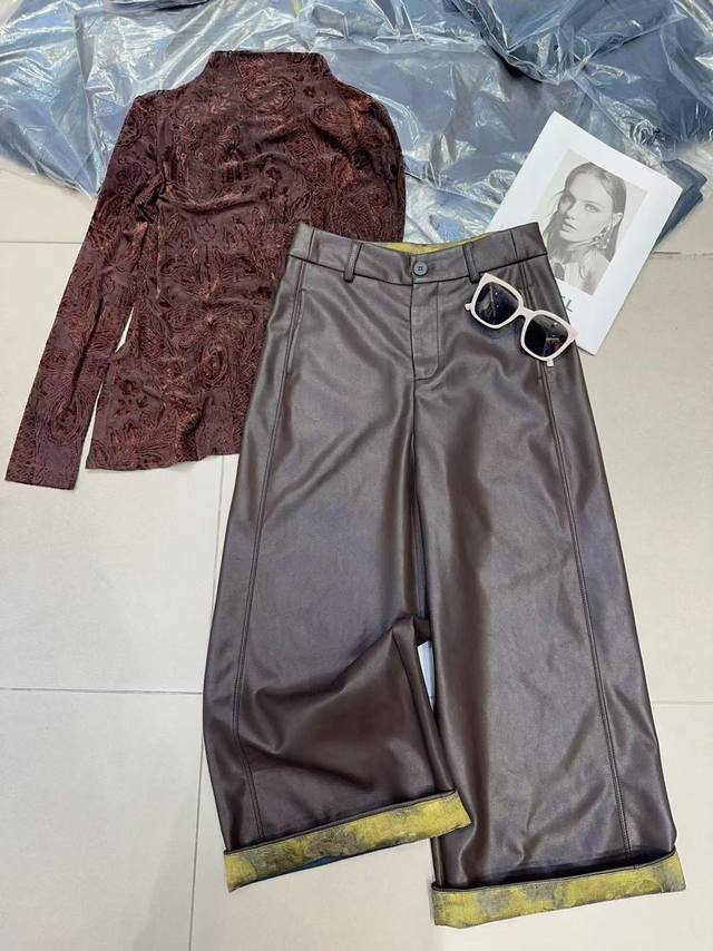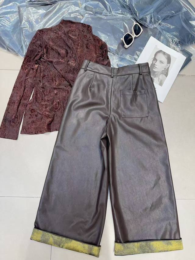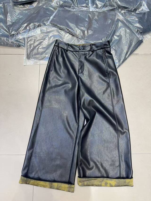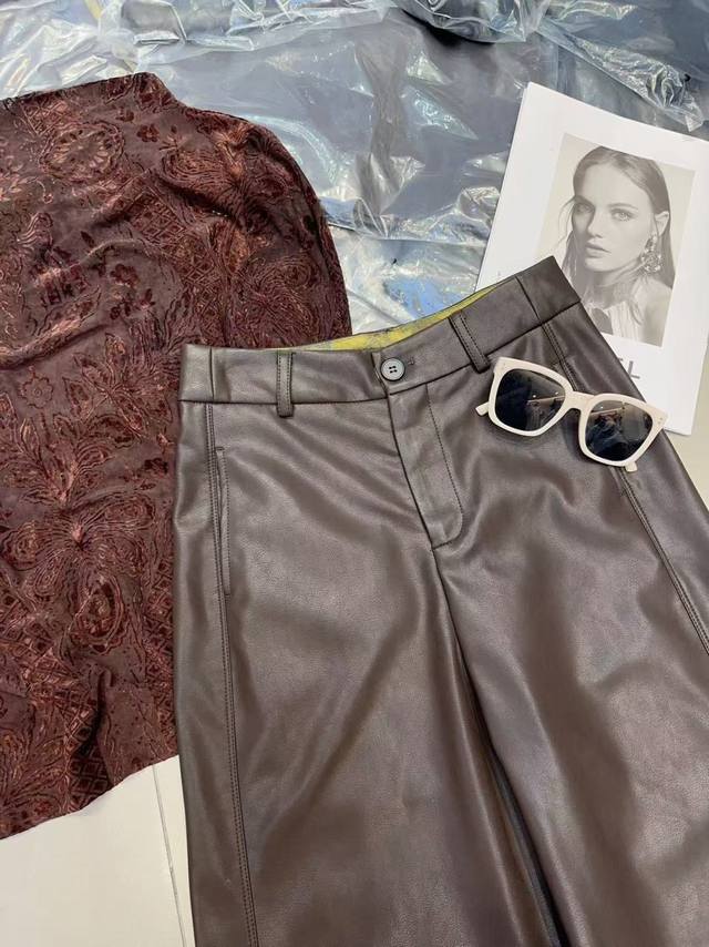 Super hot protein leather scimitar pants in black and brown with a high waist and a natural "leg-lengthening effect". The loose drape is like flowing water, shaping the legs, hiding fat and making you look thinner, and the aura is full with strides. Protein leather material breaks the stereotype of leather pants. It is soft and shiny, advanced and lightweight, breaking away from the heavy constraints and making it a burden-free everyday wear. Retro style is back, and leather pants elements are dominating the fashion circle. The scimitar style is more universal and has a lazy and relaxed feeling that is "one-click fashionable". Easy to care for, always maintain a neat look Smlxl