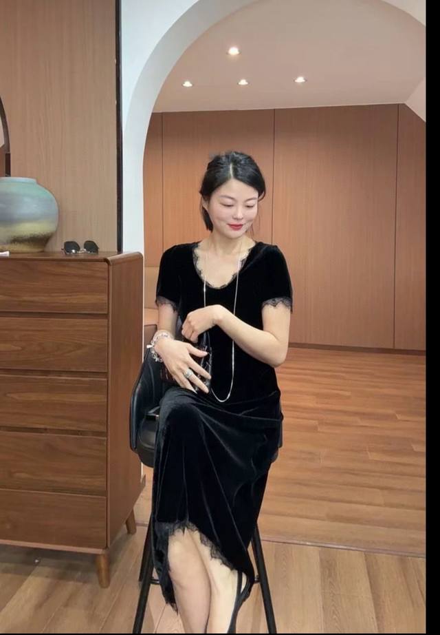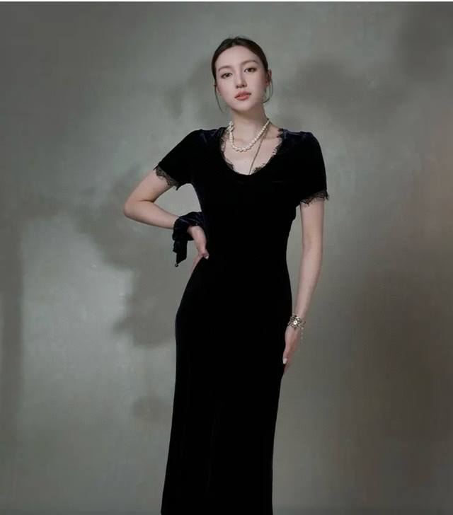 Super invincible hot-selling spot instant delivery silk velvet bias cut lace maxi dress
