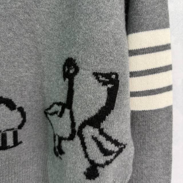 Tb* 2025 Autumn/Winter New Knit Sweater, made with high-quality wool blend, soft and warm. Gray main color with cartoon goose embroidery, blending preppy style and British tailoring, youthful yet sophisticated. Loose fit, perfect for wearing alone or layering with a shirt, easy to wear for both work and leisure. Exquisite craftsmanship and unique design, a must-have item for autumn and winter. 1 color, 3 sizes: S, M, L, T226B. DDD