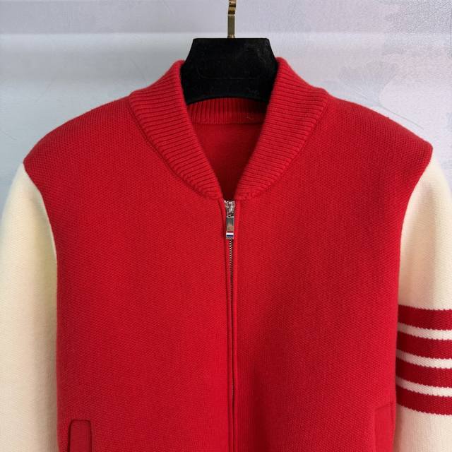 Tb* 2026 Early Spring New Round Neck Raglan Knit Cardigan! Made with custom wool yarn, baseball jacket style, ready-to-wear zip-up front, and finished with contrasting striped elastic ribbed trim. The overall look is sophisticated yet casual. The color-blocked raglan sleeves add a youthful and stylish touch, showcasing a fashionable flair. Perfect for wearing alone or layering! 2 colors, 3 sizes: S, M, L, T226B, DDD