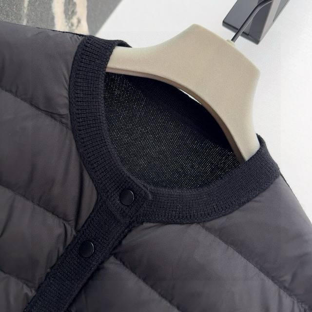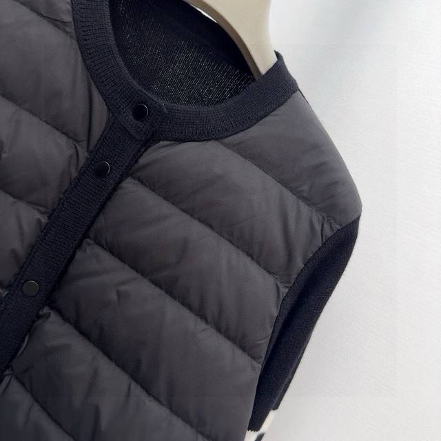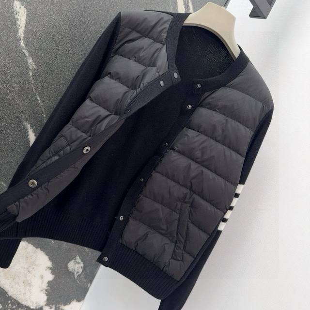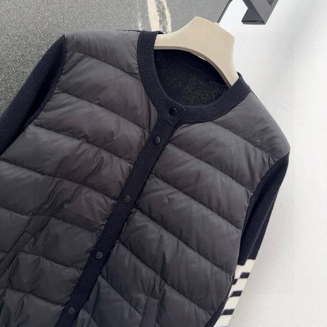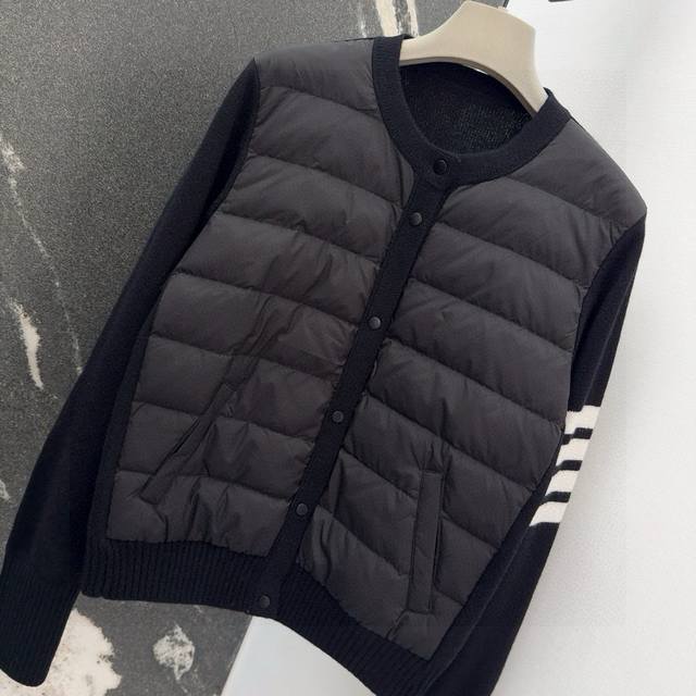 Tb 24Ss Autumn/Winter Hot Selling Wool and Down Trim Round Neck Short Down Jacket, National Standard Imported 90% Down, Lightweight and Comfortable, with Built-in Heating and Warmth Retention Function, Merino Wool Trim Cuffs for a Comfortable and Thick Feel, Minimalist Luxury, H-Line Fit, Flattering and Slimming, Casual and Versatile, Italian Elegance, High-End Feel, Casual and Stylish ML