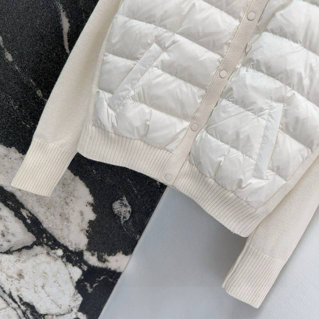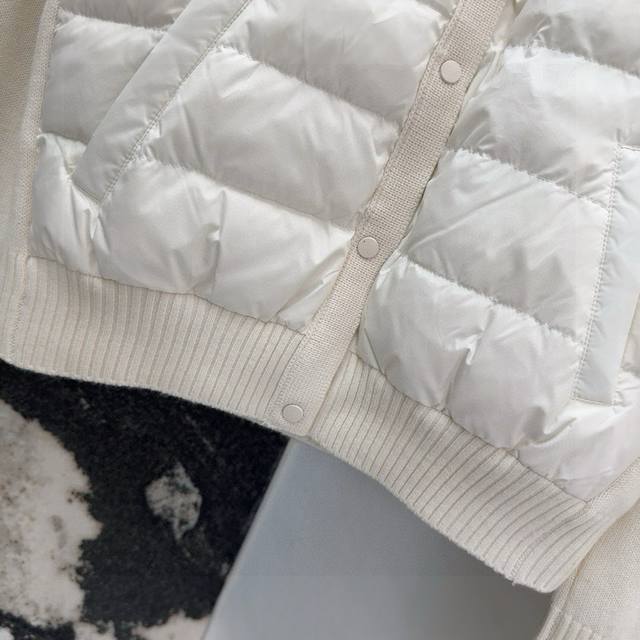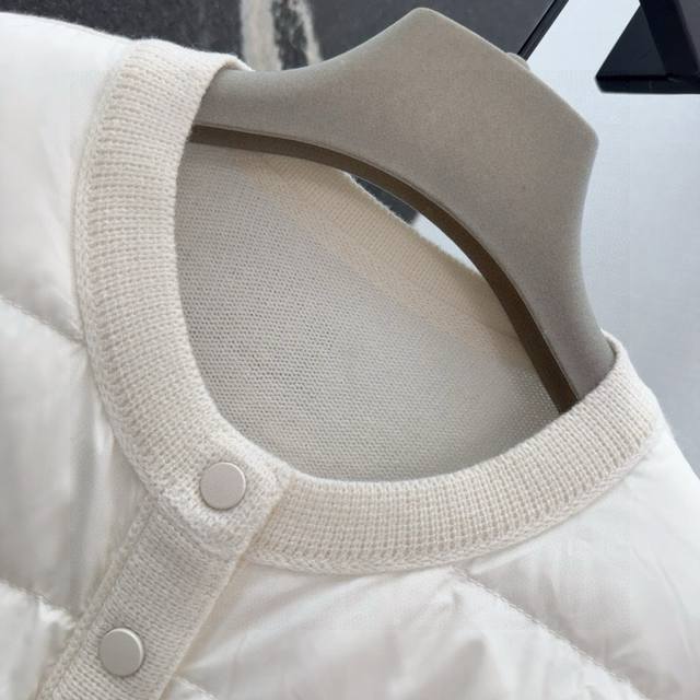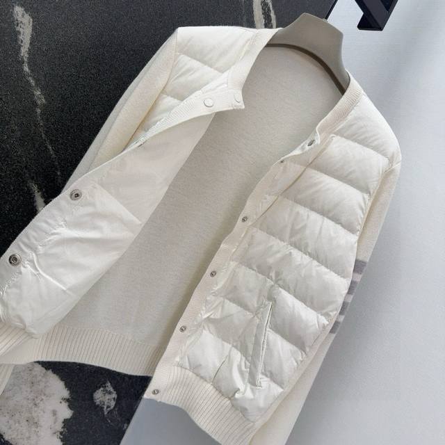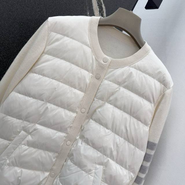 Tb 24Ss Autumn/Winter Hot Selling Wool and Down Trim Round Neck Short Down Jacket, National Standard Imported 90% Down, Lightweight and Comfortable, with Built-in Heating and Warmth Retention Function, Merino Wool Trim Cuffs for a Comfortable and Thick Feel, Minimalist Luxury, H-Line Fit, Flattering and Slimming, Casual and Versatile, Italian Elegance, High-End Feel, Casual and Stylish ML